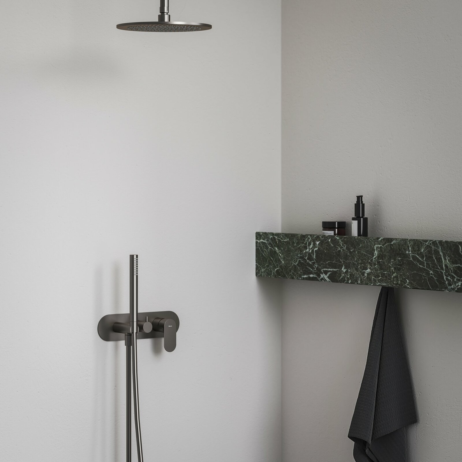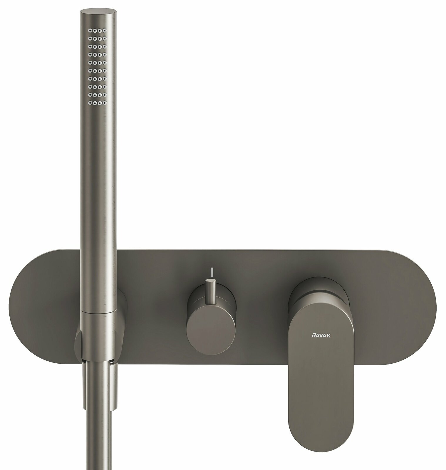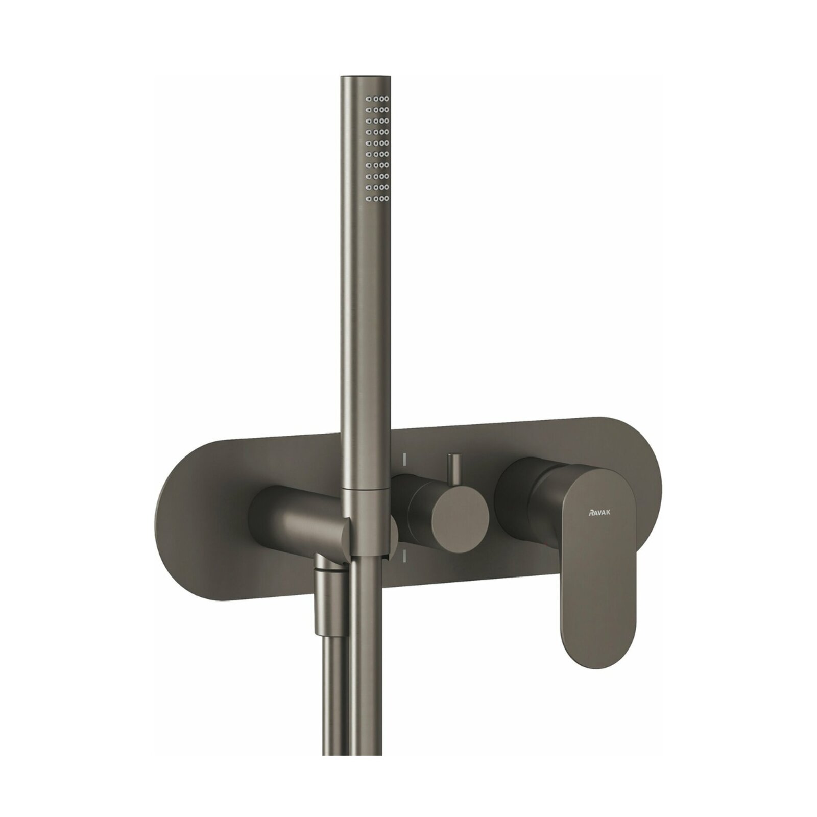 Podomítková 2cestná baterie Eleganta, se sprchovým setem, určená pro R-box. V provedení Graphite Brushed.- kartuš (průměr, materiál): 35 mm, keramická
