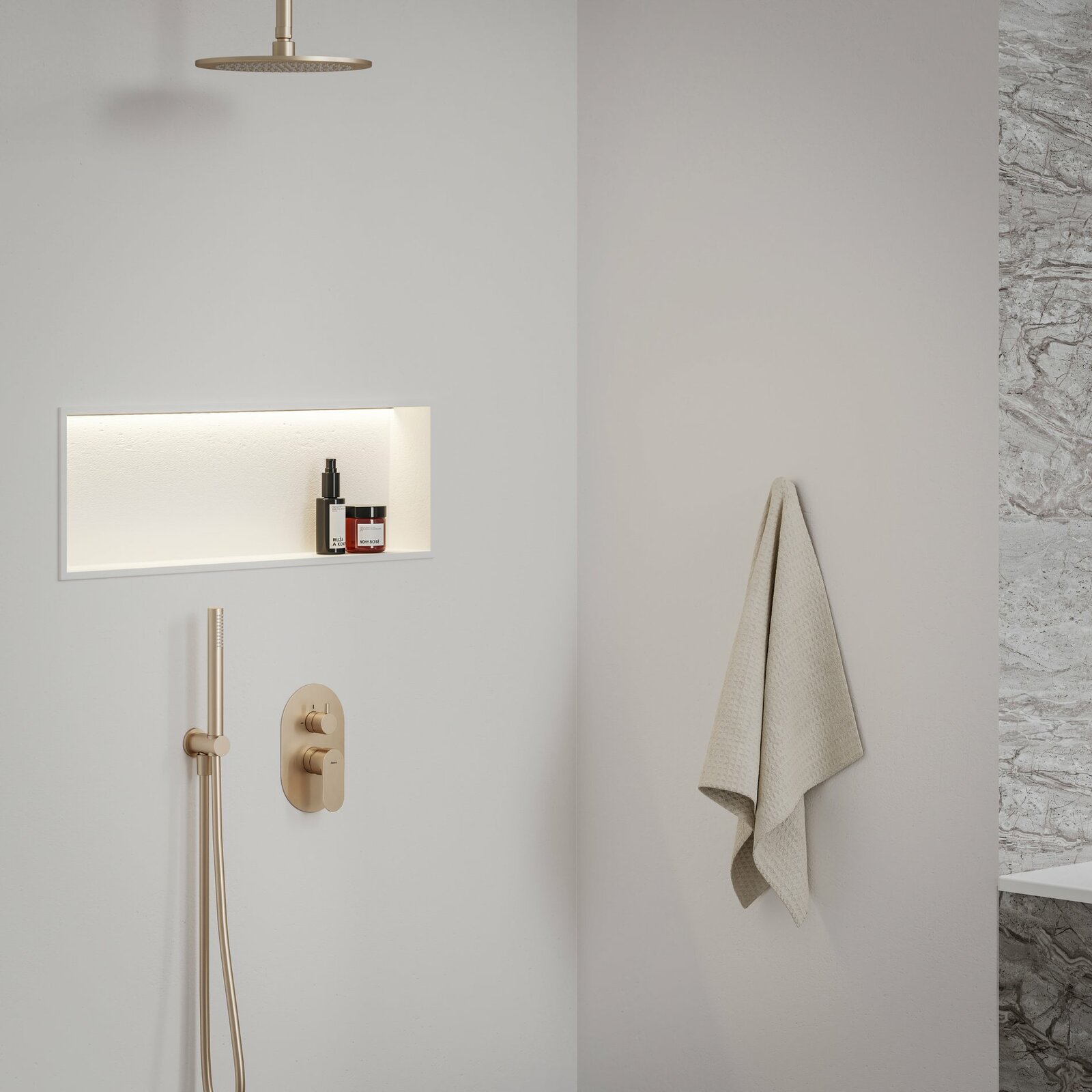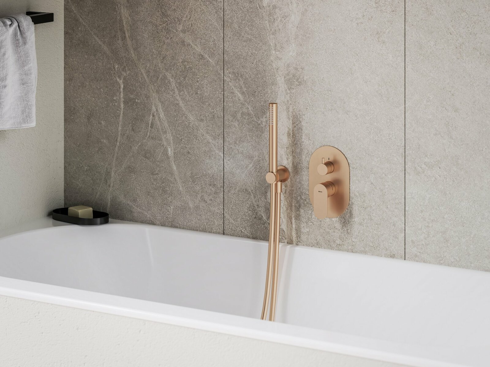 Podomítková 2cestná baterie Eleganta, určena pro R-box. V provedení Rose Gold Brushed.- kartuš (průměr, materiál): 35 mm, keramická