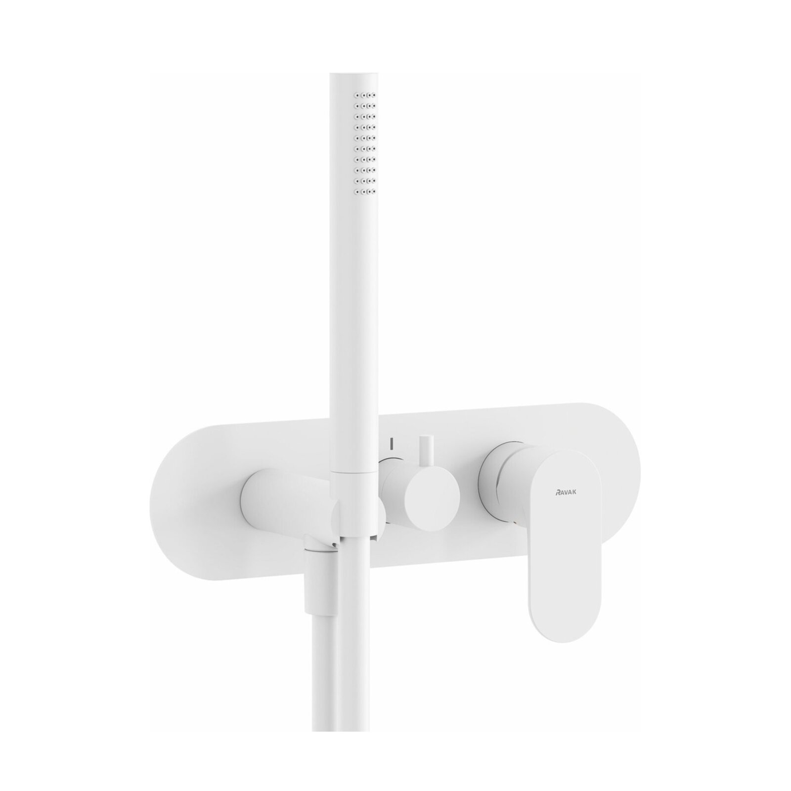 Baterie Ravak Eleganta EL 068.00 RB D podomítková 3-cestná, bez tělesa, se sprchovým setem, bílá mat, X070259