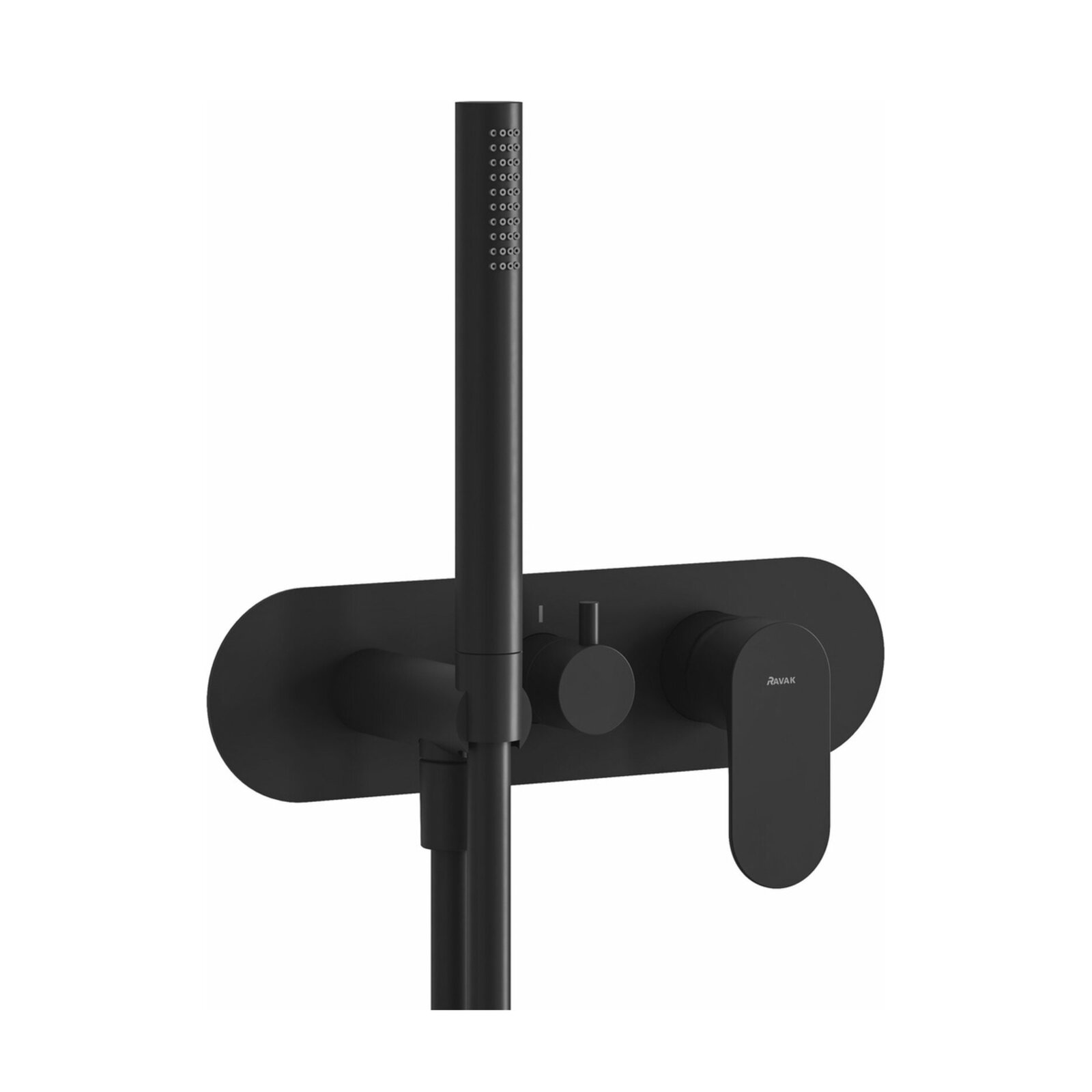Baterie Ravak Eleganta EL 068.00 RB D podomítková 3-cestná, bez tělesa, se sprchovým setem, černá mat, X070296