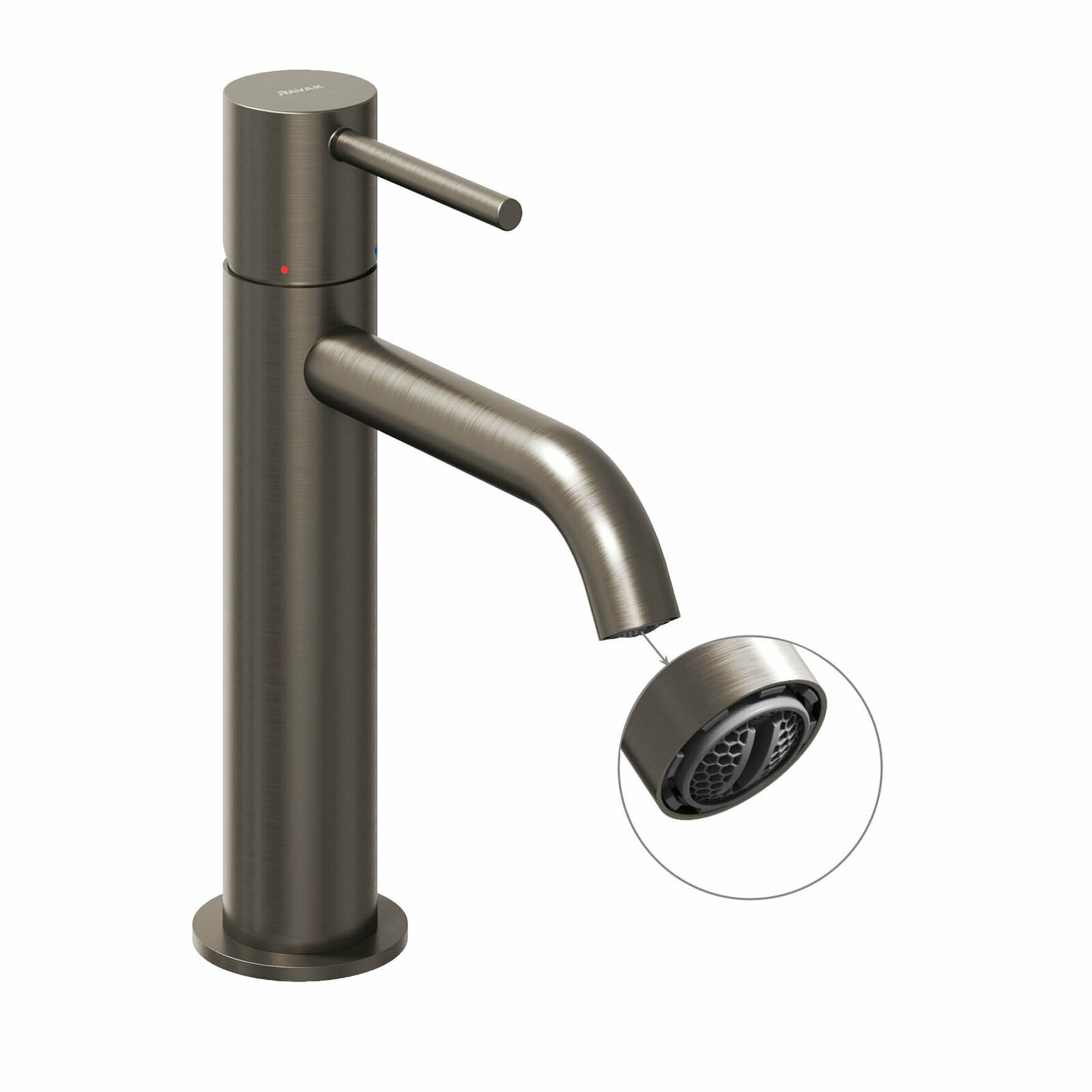 Stojánková umyvadlová baterie Espirit, bez výpusti. V provedení Graphite Brushed. Skrytý perlátor s funkcí EcoFlow.- výška baterie: 191 mm