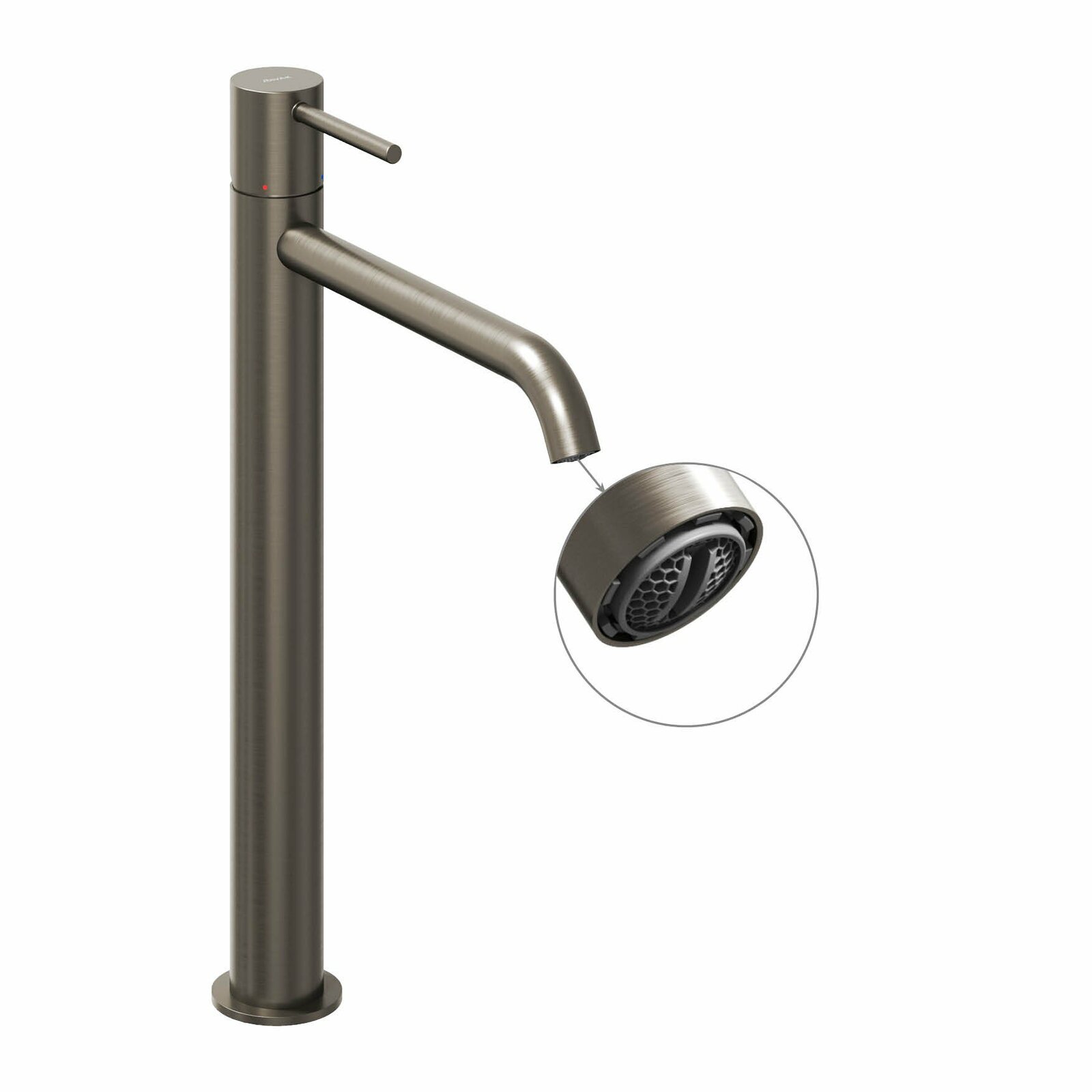 Stojánková umyvadlová baterie Espirit, bez výpusti. V provedení Graphite Brushed. Skrytý perlátor s funkcí EcoFlow.- výška baterie: 341 mm