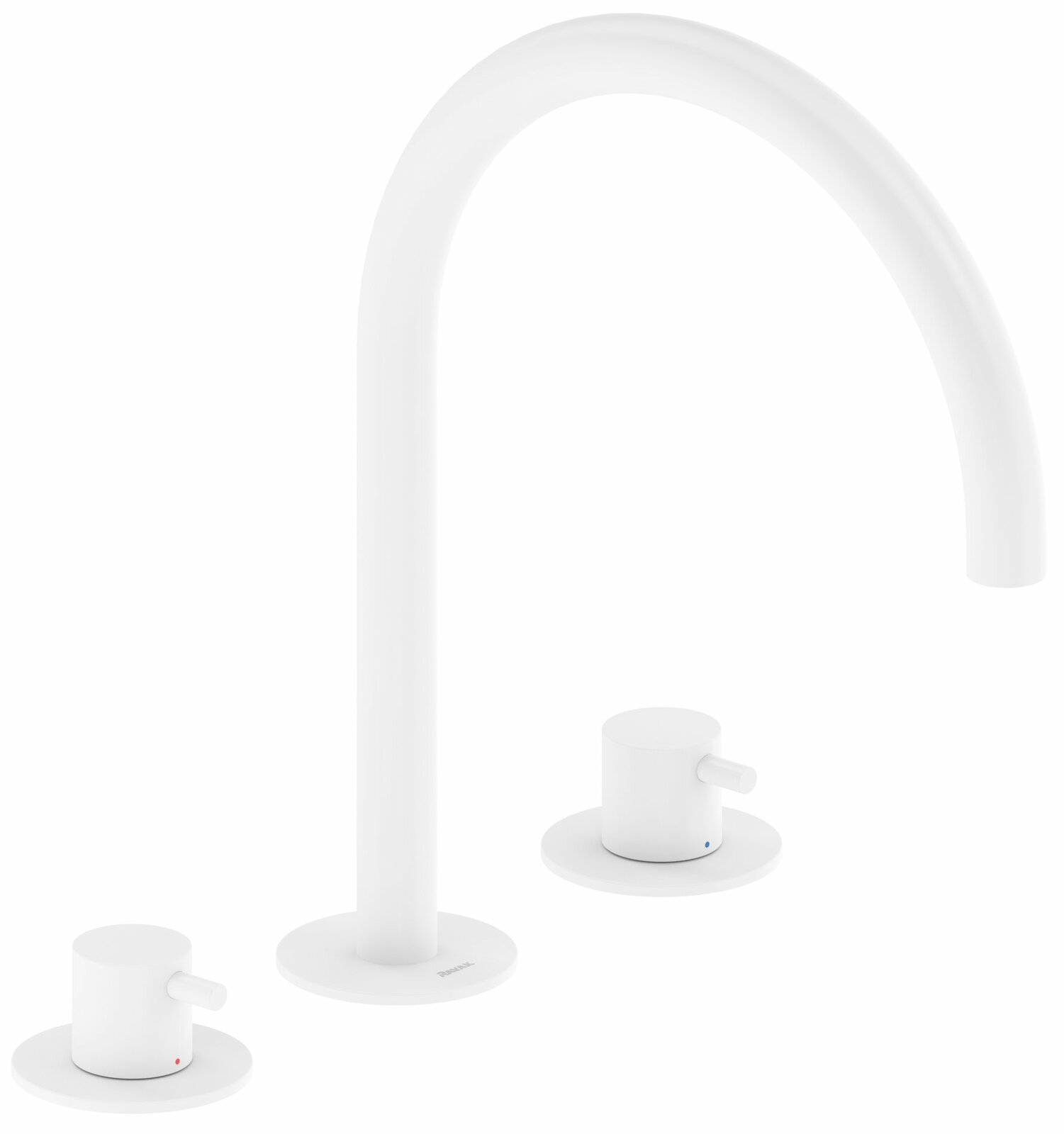 Stojánková umyvadlová tříotvorová baterie Espirit, bez výpusti. V provedení White Velvet. Skrytý perlátor s funkcí EcoFlow.- výška baterie: 270 mm