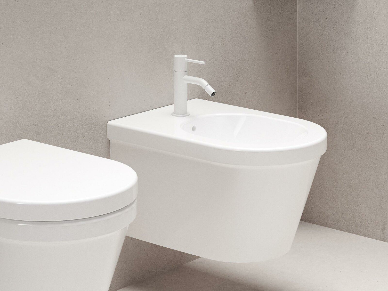 Stojánková bidetová baterie Espirit, bez výpusti. V provedení White Velvet. Skrytý perlátor s funkcí EcoFlow.- výška baterie: 154 mm