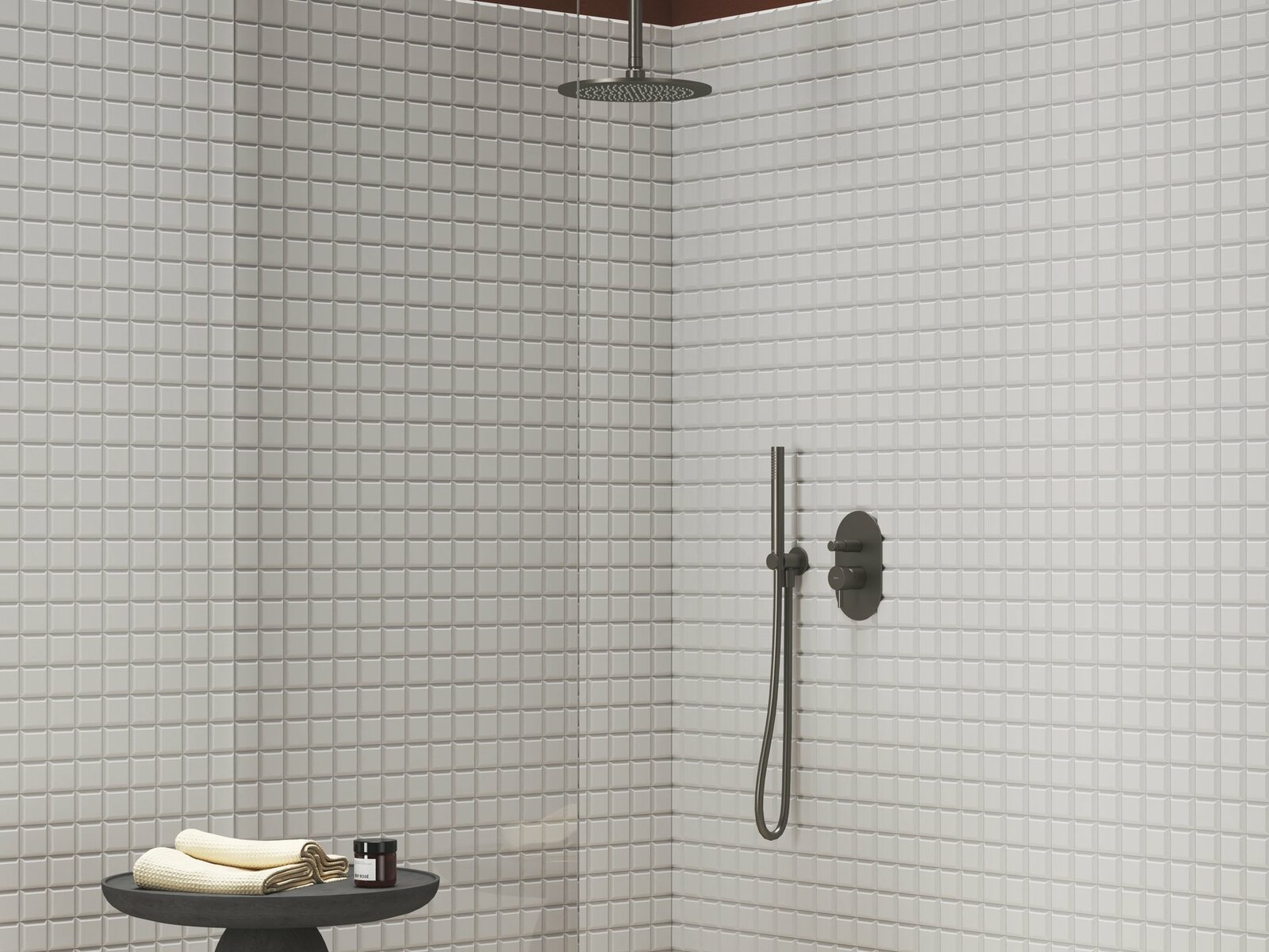 - pro sprchové kouty, které mají pevnou hlavovou a ruční sprchu