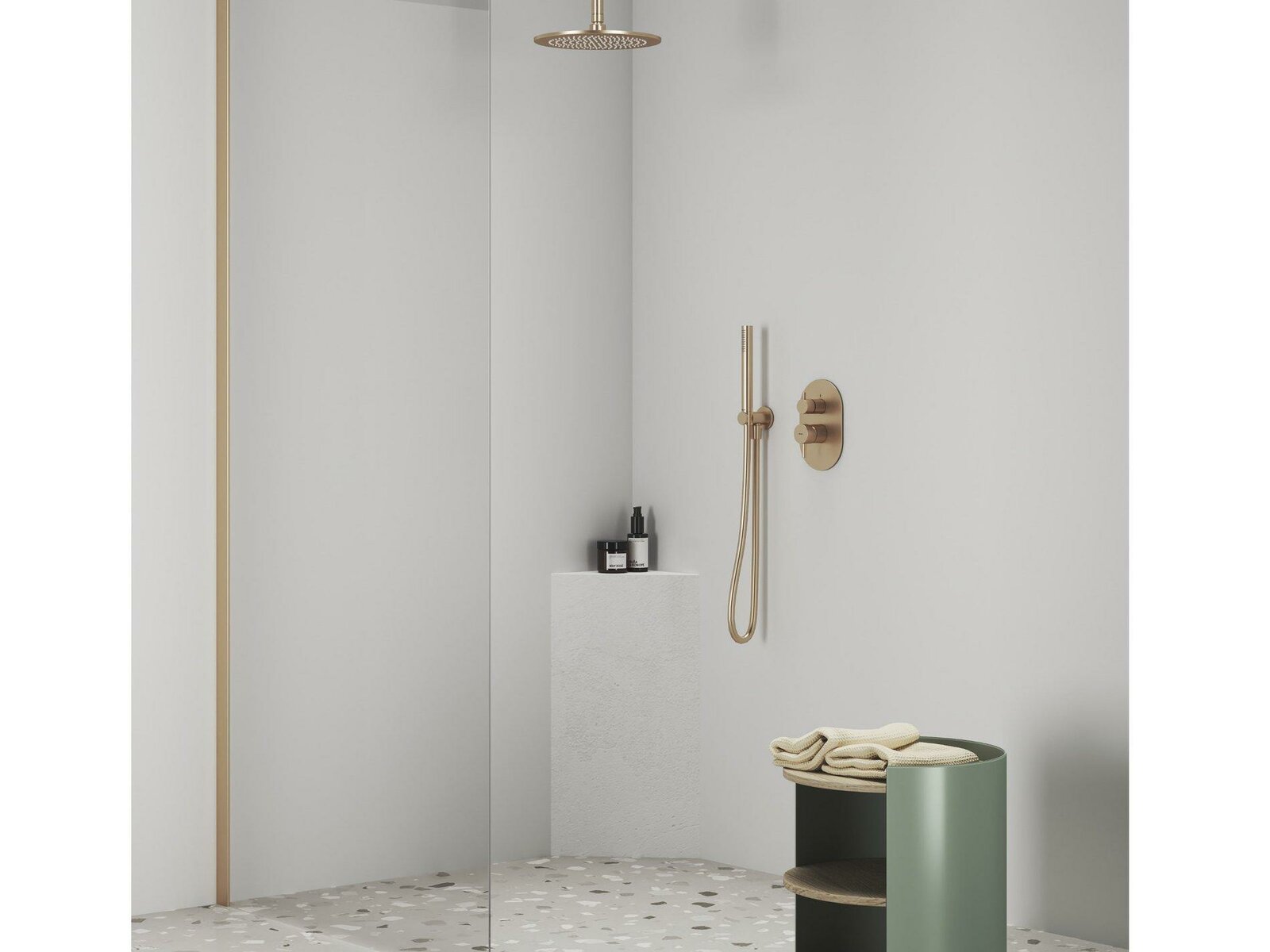- pro sprchové kouty, které mají pevnou hlavovou a ruční sprchu