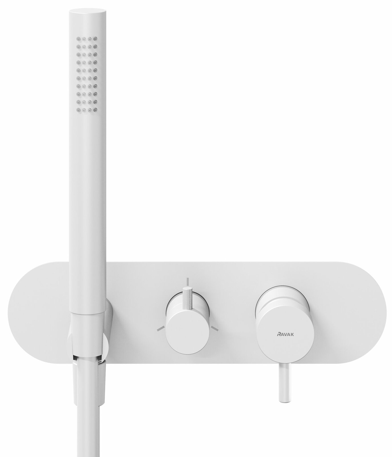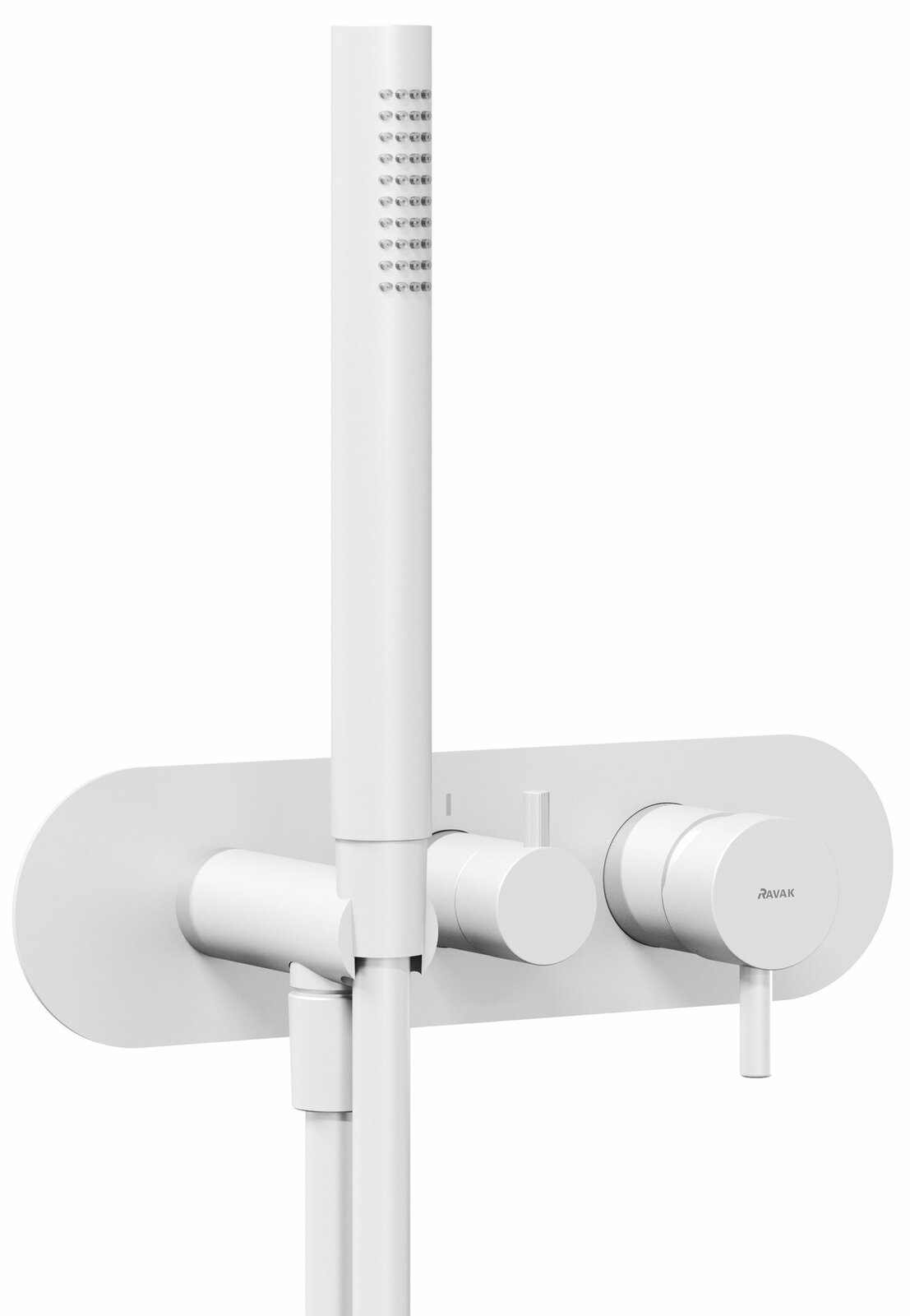 Baterie Ravak Espirit ES 068.00 RB D podomítková 3-cestná, bez tělesa, se sprchovým setem, bílá mat, X070245