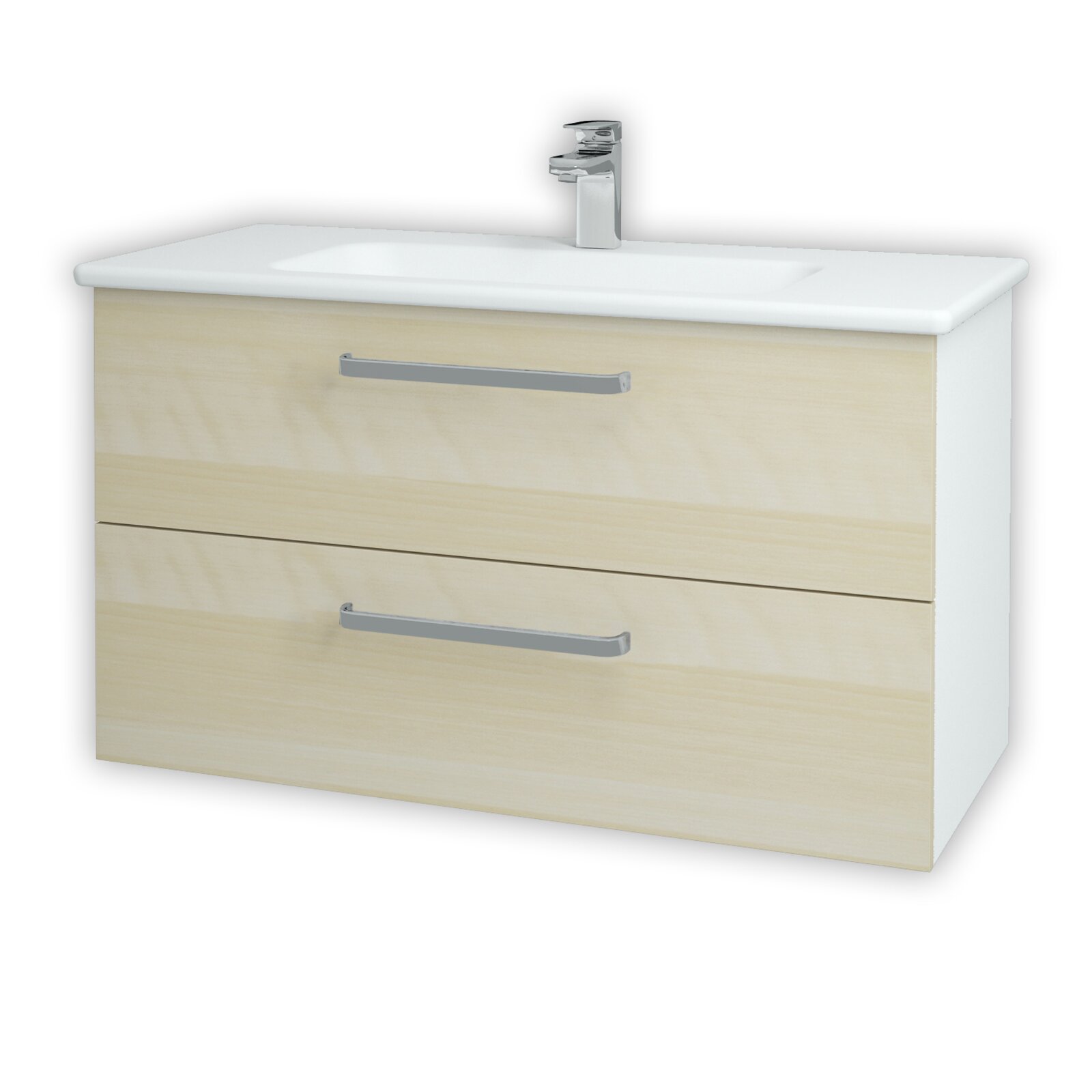 Koupelnová skříňka s umyvadlem EUPHORIA v závěsném provedení je vybavena dvěma prostornými zásuvkami. Skříňka je osazena keramickým umyvadlem EUPHORIA 100 s prostornou odkládací plochou.