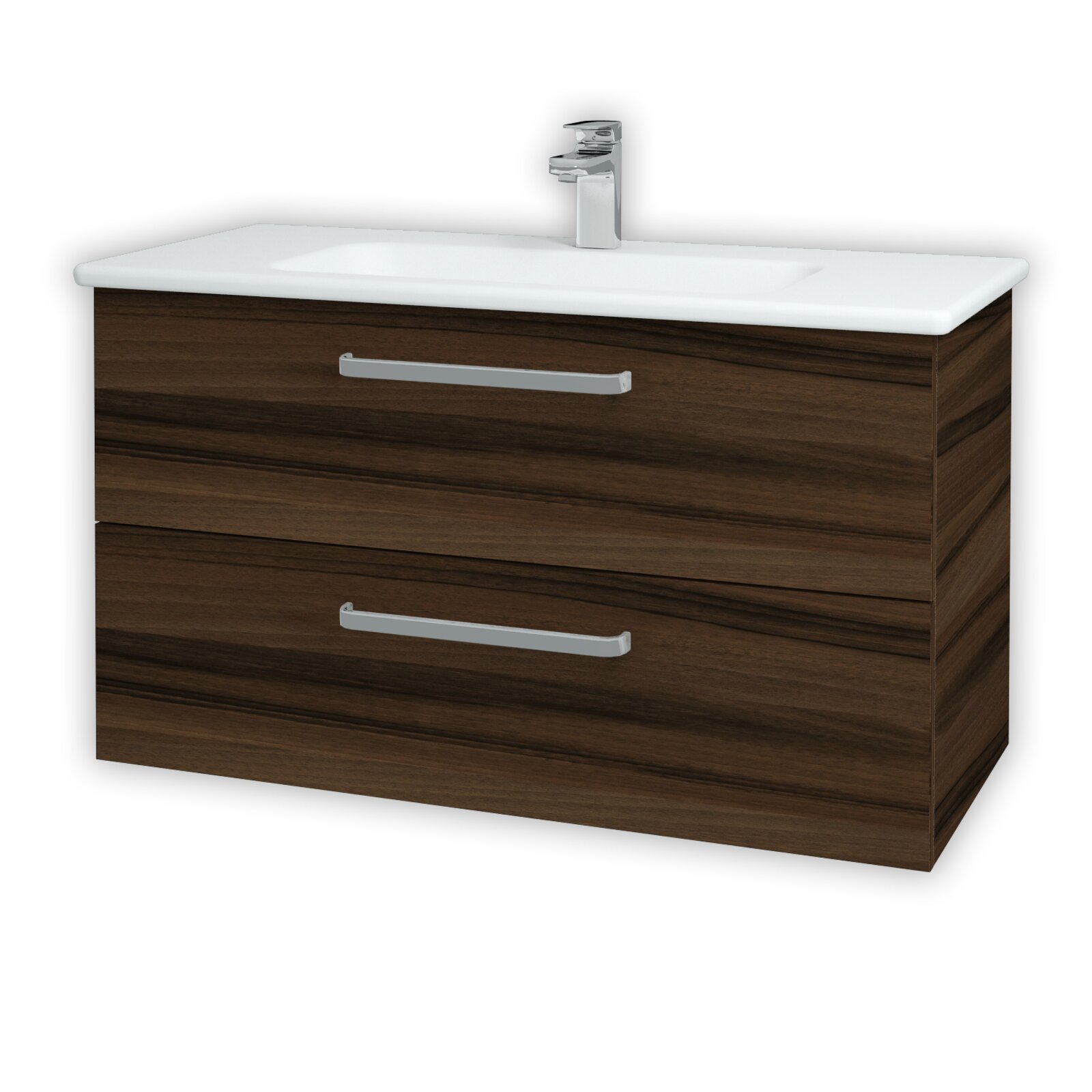 Koupelnová skříňka s umyvadlem EUPHORIA v závěsném provedení je vybavena dvěma prostornými zásuvkami. Skříňka je osazena keramickým umyvadlem EUPHORIA 100 s prostornou odkládací plochou.