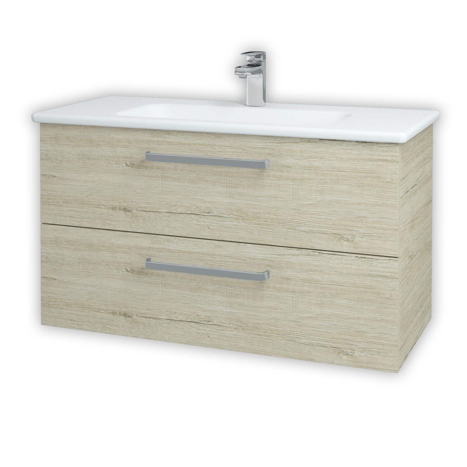 Koupelnová skříňka s umyvadlem EUPHORIA v závěsném provedení je vybavena dvěma prostornými zásuvkami. Skříňka je osazena keramickým umyvadlem EUPHORIA 100 s prostornou odkládací plochou.