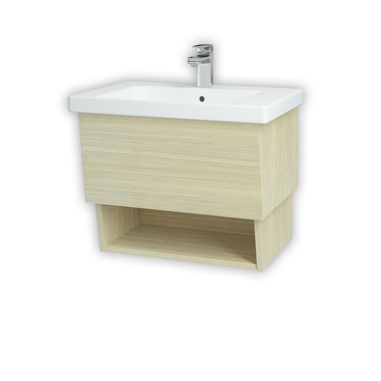 Součástí ceny této koupelnové skříňky je také kvalitní keramické umyvadlo Harmonia 65. Boční a zadní část umyvadla tvoří rovná plocha, která může sloužit jako praktická odkládací plocha, například pro dávkovač mýdla či další předměty potřebné pro každodenní hygienu.