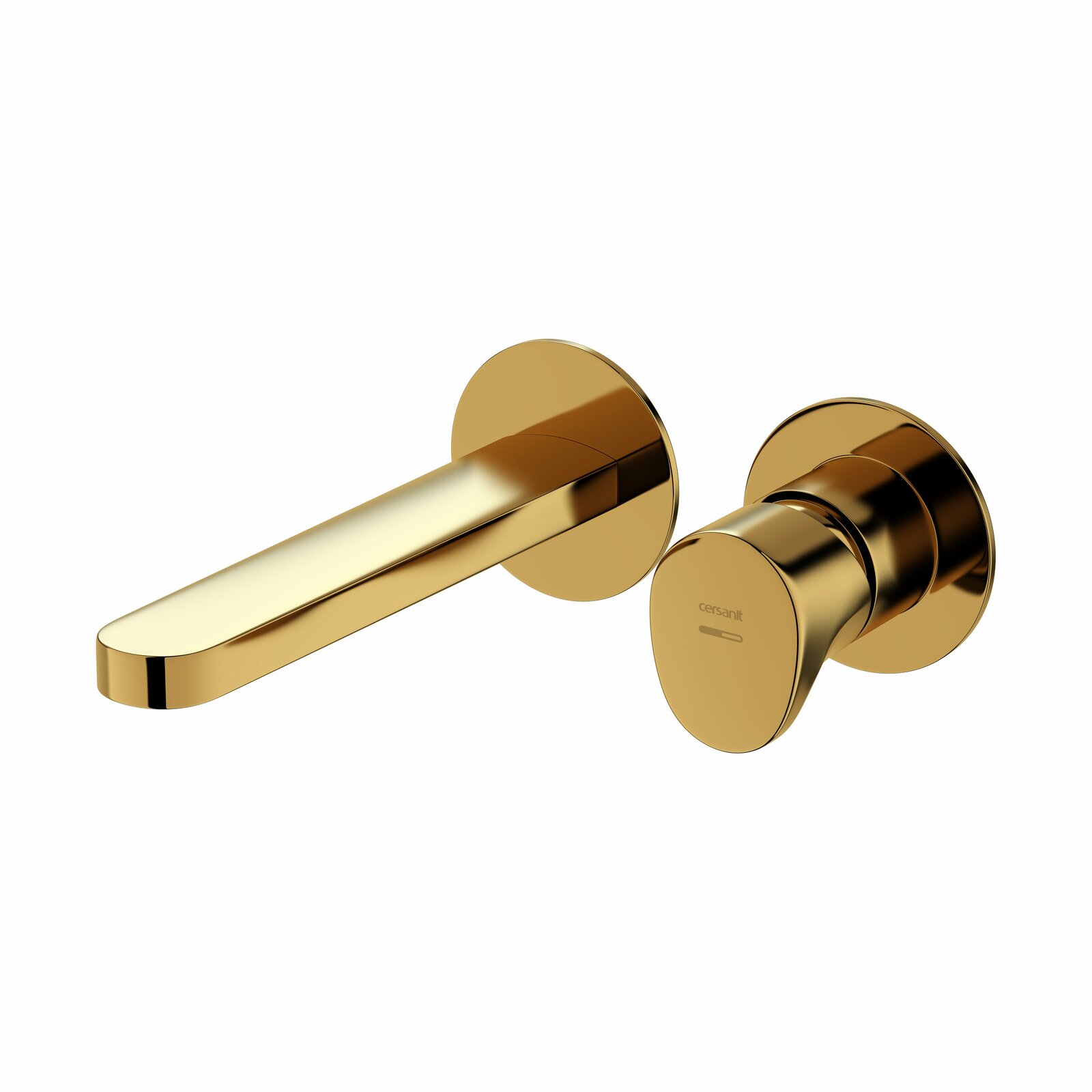 Baterie Cersanit Inverto umyvadlová podomítková, s montážním tělesem, bez výpusti, zlatá / zlatá páka, S951-299