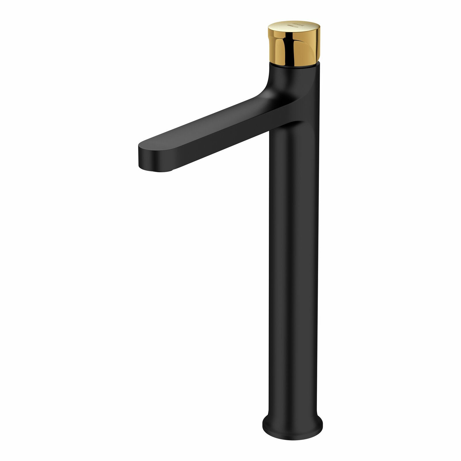 Baterie Cersanit Inverto umyvadlová stojánková vysoká, s příslušenstvím, bez výpusti, černá / zlatá páka, S951-303