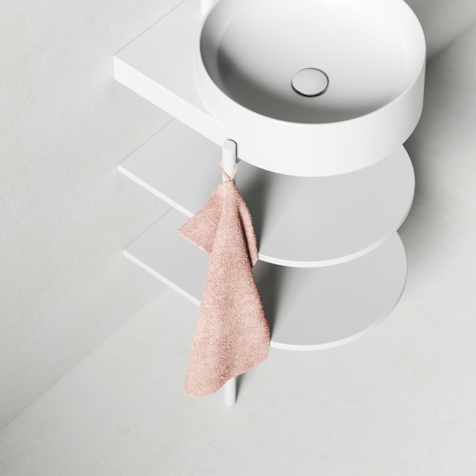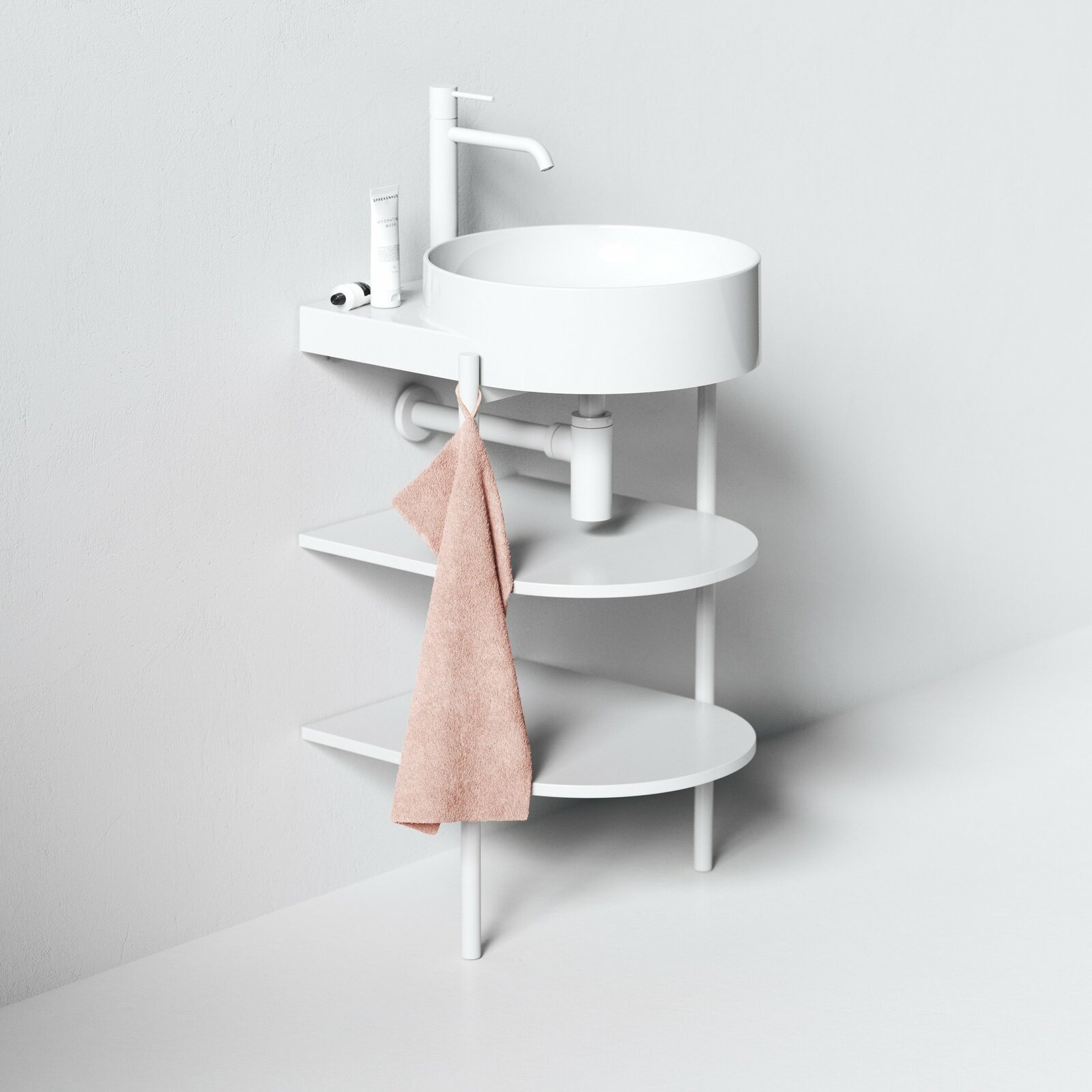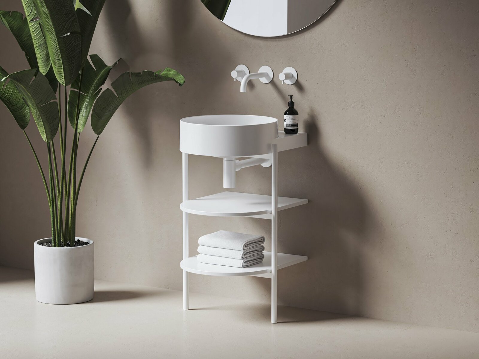 Stojící kovová konstrukce s policemi CS Yard 40 k instalaci umyvadla Yard 40. V bílém matném provedení.- rozměry (šxhxv): 46,8 x 49,5 x 76,5 cm