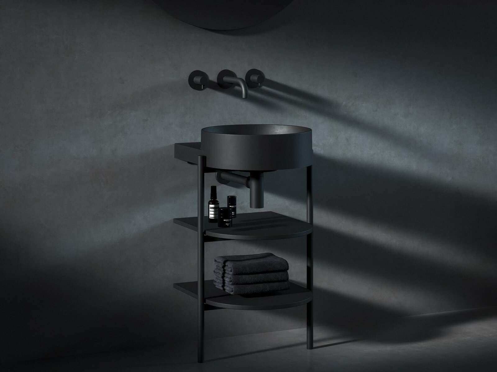 Stojící kovová konstrukce s policemi CS Yard 40 k instalaci umyvadla Yard 40. V černém matném provedení.- rozměry (šxhxv): 46,8 x 49,5 x 76,5 cm