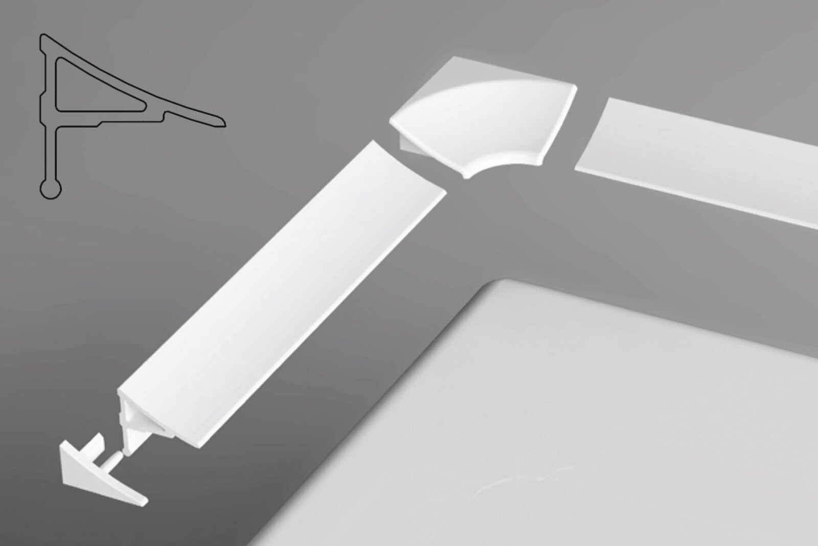 Krycí lišta v délce 2000 mm k zatěsnění a překrytí spáry do 10 mm vzniklé při instalaci vaniček a van. V bílém provedení.- typ: 10