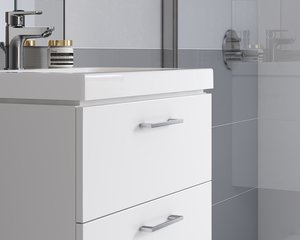 Součástí sestavy je závěsná skříňka pod umyvadlo LARA WHITE 100 s umyvadlem COMO 100. Čelo skříně a korpus jsou vyrobeny z 16mm dřevotřísky, lakované v bílé barvě. Skříň má dvě prostorné zásuvky s funkcí soft-close a delšími chromovanými úchyty. Tento kus vyžaduje vlastní montáž.