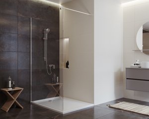 Vchodový sprchový kout MILLE je vyroben z tvrzeného bezpečnostního skla o tloušťce 8 mm, které zajišťuje strukturální stabilitu a bezpečné používání.