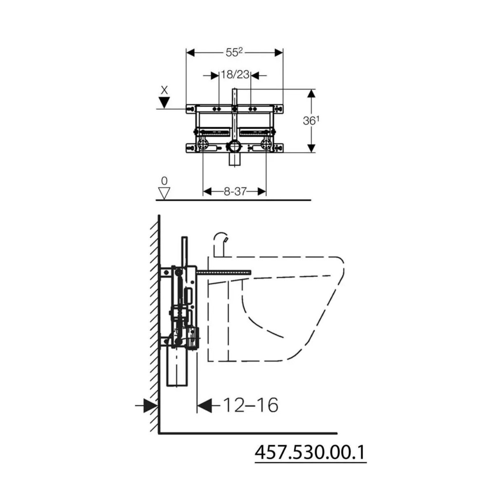 Předstěnový instalační modul Geberit Kombifix pro bidet, 112 cm, univerzální, 457.530.00.1