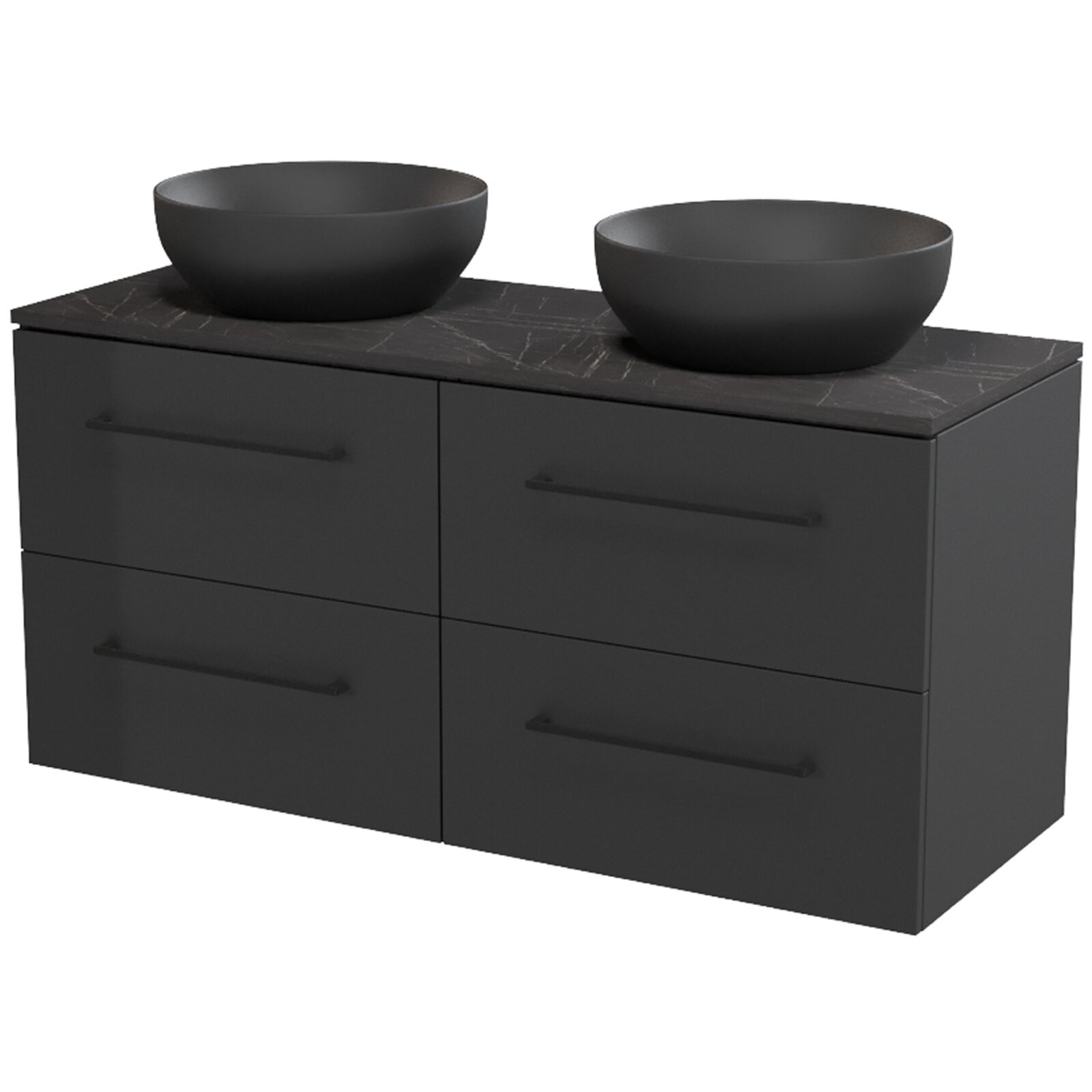 Nábytkový set Cersanit Larga 120, skříňka 60 pod desku antracitová 2x, deska 120 horní černý mramor, umyvadlo Larga 40 na desku kulaté antracitové 2x, úchytky černé