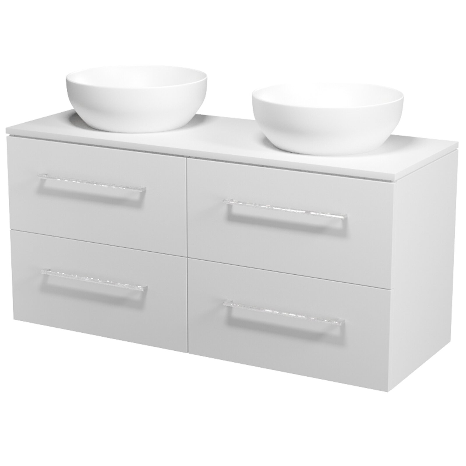 Nábytkový set Cersanit Larga 120, skříňka 60 pod desku bílá 2x, deska 120 horní bílá, umyvadlo Larga 40 na desku kulaté bílé 2x, úchytky chrom