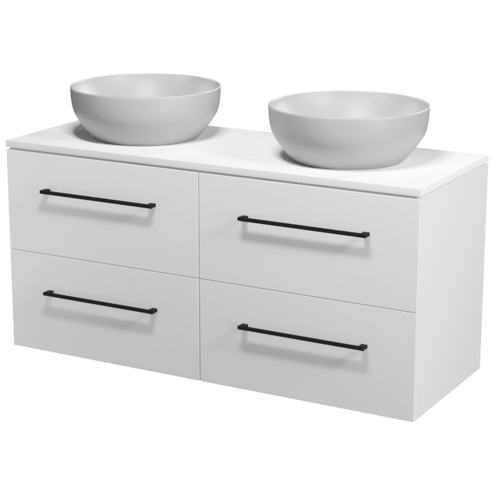 Nábytkový set Cersanit Larga 120, skříňka 60 pod desku bílá 2x, deska 120 horní bílý mramor, umyvadlo Larga 40 na desku kulaté šedé 2x, úchytky černé