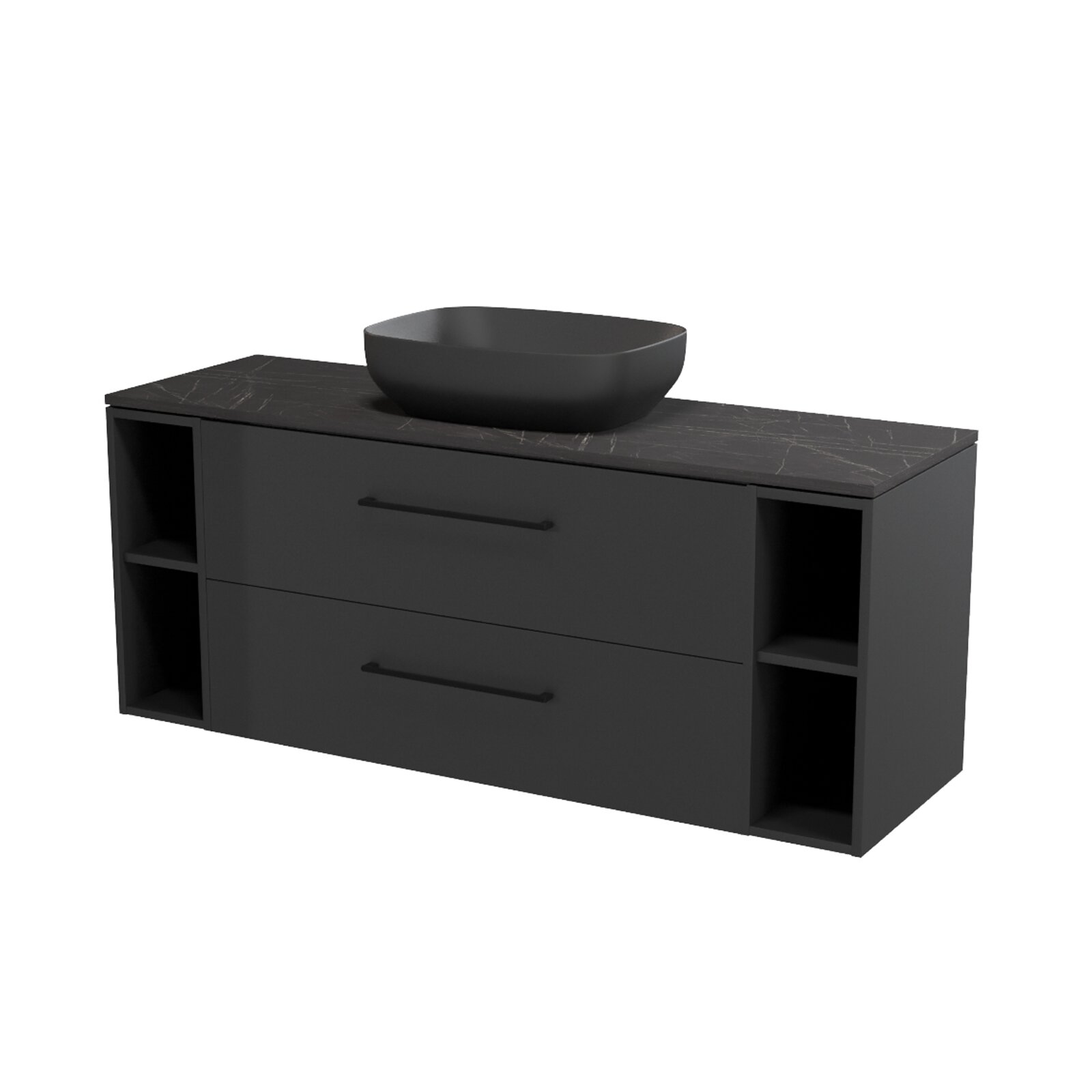 Nábytkový set Cersanit Larga 140, skříňka 100 pod desku antracitová, skříňka 20 pod desku otevřená antracitová 2x, deska 140 horní černý mramor, umyvadlo Larga 50 na desku obdélníkové antracitové, úchytky černé
