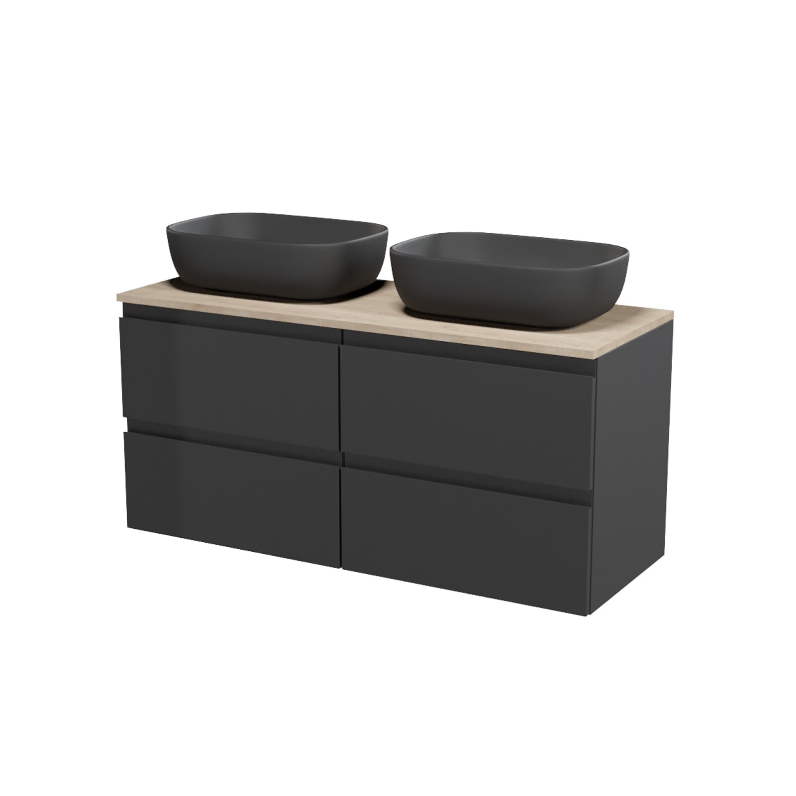 Nábytkový set Cersanit Moduo 120, skříňka 60 pod desku antracitová 2x, deska 120 horní dub, umyvadlo Moduo 50 na desku obdélníkové antracitové 2x