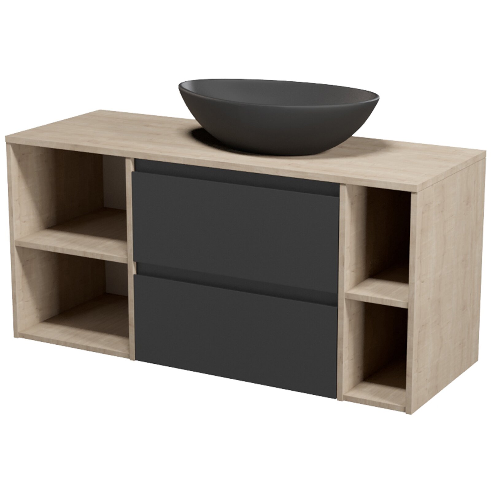 Nábytkový set Cersanit Moduo 120, skříňka 60 pod desku antracitová, skříňka 40 pod desku otevřená dub, skříňka 20 pod desku dub, deska 120 dub, umyvadlo Moduo 55 na desku nepravidelné antracitové