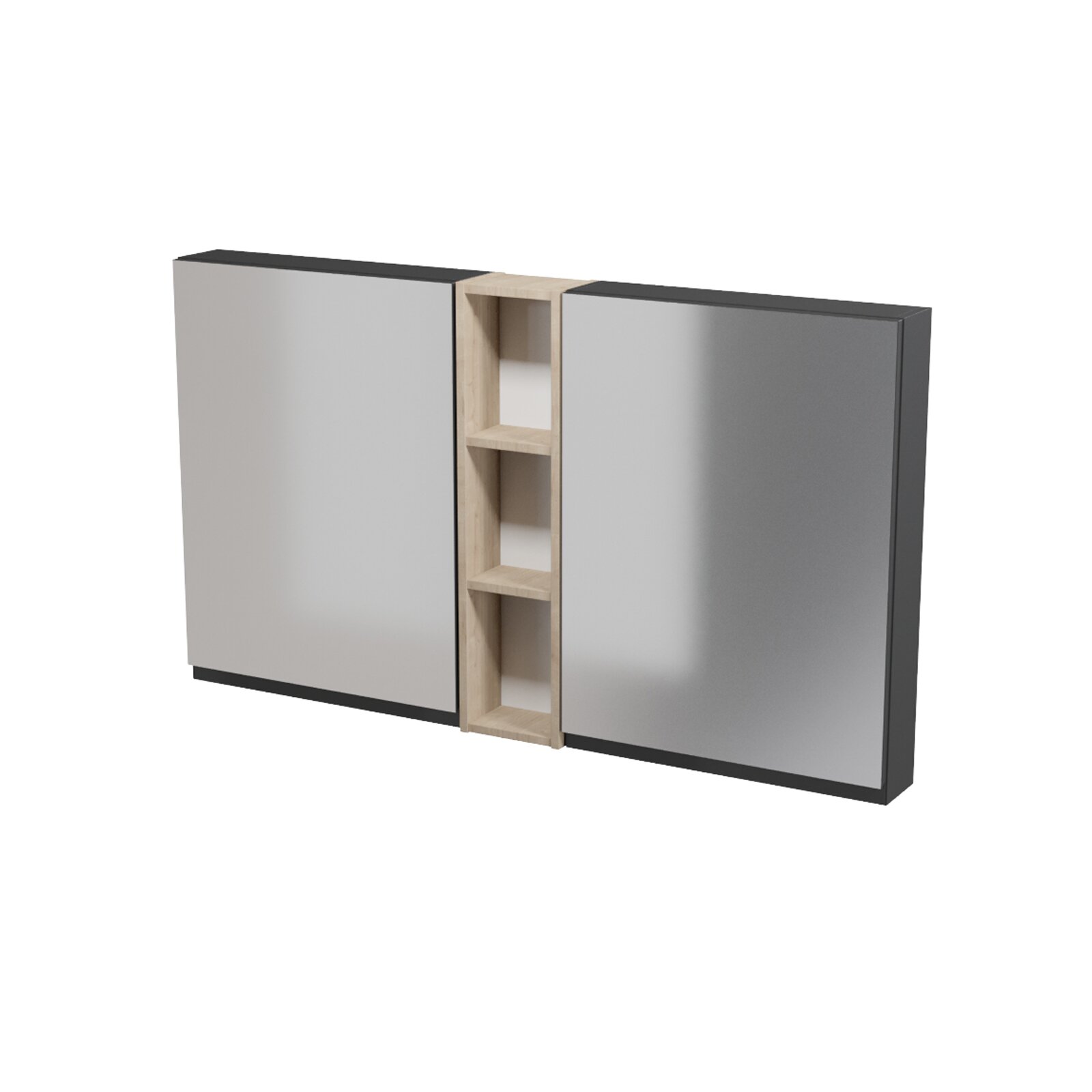 Nábytkový set Cersanit Moduo 140, skříňka 60 zrcadlová závěsná antracitová 2x, skříňka 20 horní závěsná otevřená dub