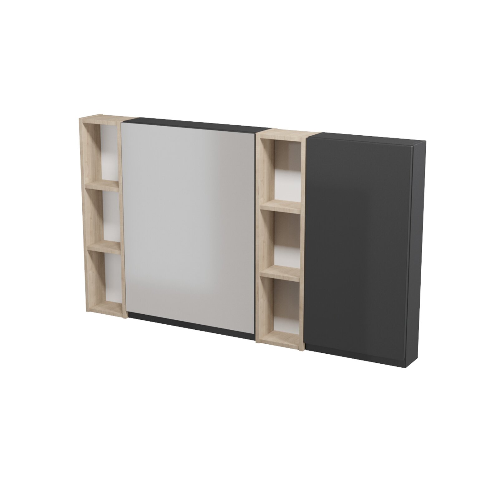 Nábytkový set Cersanit Moduo 140, skříňka 60 zrcadlová závěsná antracitová, skříňka 20 horní závěsná otevřená dub 2x, skříňka 40 závěsná horní antracitová