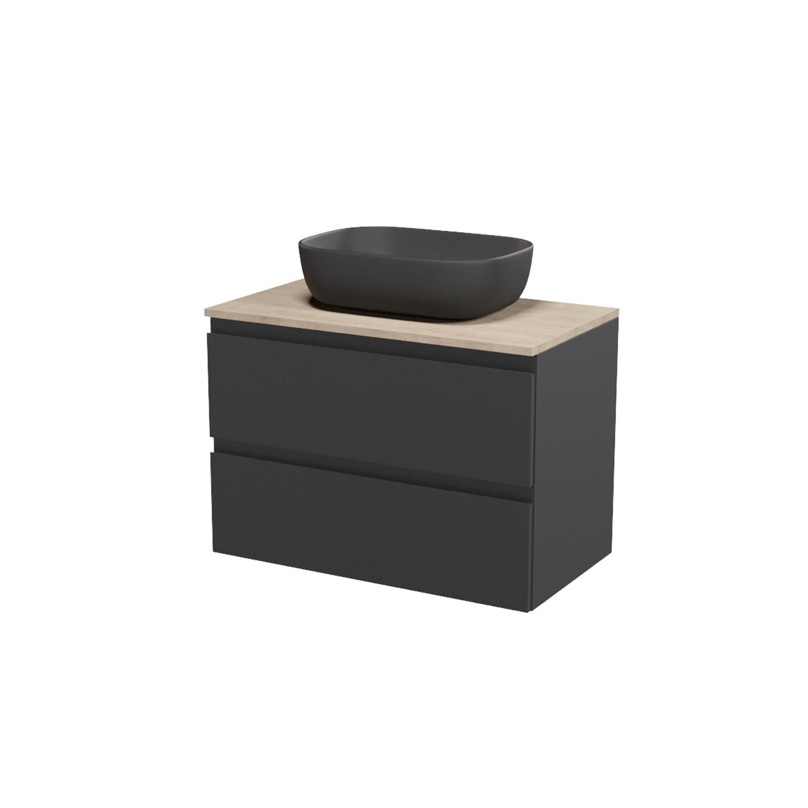 Nábytkový set Cersanit Moduo 80, skříňka 80 pod desku antracitová, deska 80 horní dub, umyvadlo Moduo 50 na desku obdélníkové antracitové