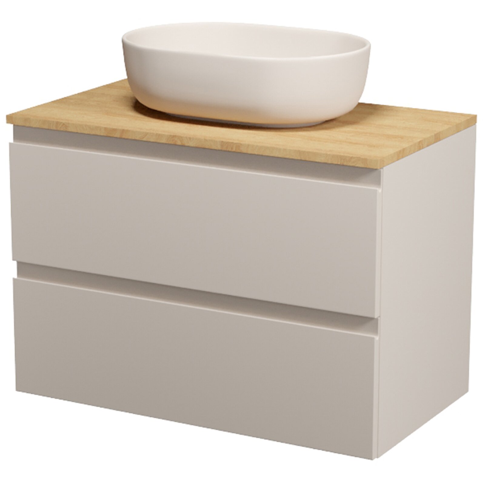 Nábytkový set Cersanit Moduo 80, skříňka 80 pod desku kašmír, deska 80 horní dub, umyvadlo Moduo 50 na desku oválné béžové