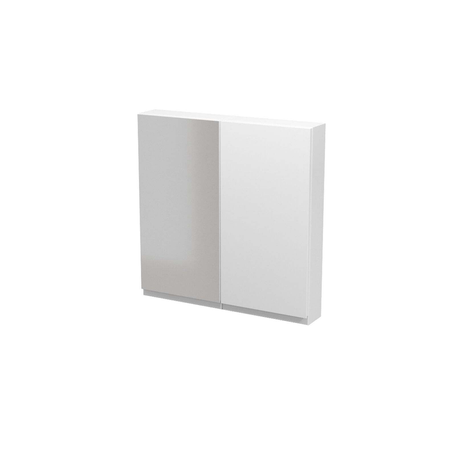 Zrcadlová skříňka MODUO je vyrobena z bílé lakované nábytkové desky. Uvnitř jsou tři police: jedna pevná dřevotřísková police a dvě skleněné police. Skříň nabízí univerzální montáž na dveře - levou nebo pravou. Vyznačuje se frézovanou rukojetí a systémem soft-close.
