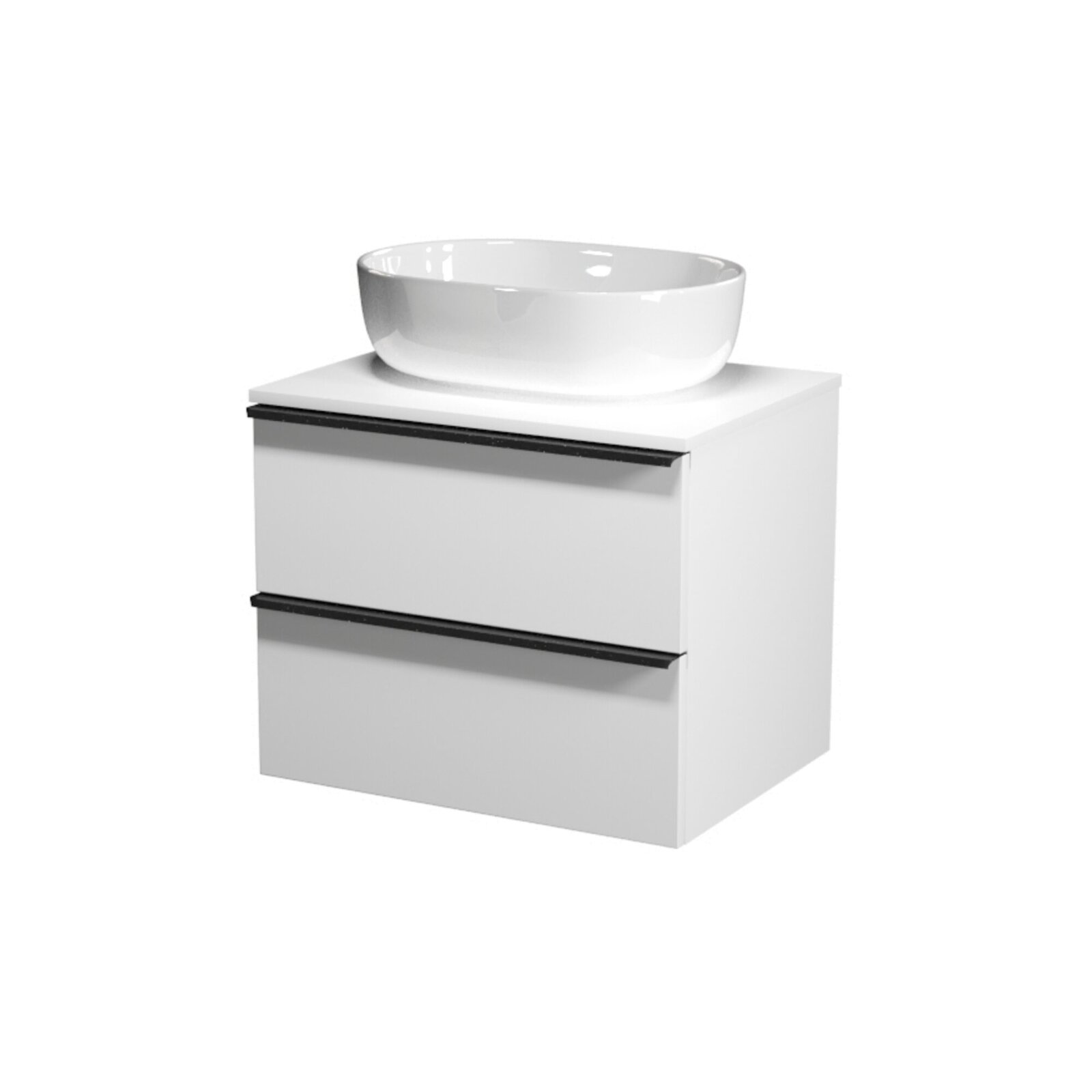 Nábytkový set Cersanit Virgo 60, skříňka 60 s deskou bílá, úchytky černé, umyvadlo Moduo 50 na desku oválné bílé