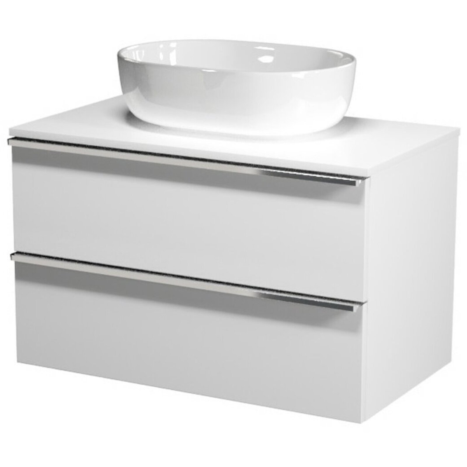 Nábytkový set Cersanit Virgo 80, skříňka 80 s deskou bílá, úchytky černé, umyvadlo Moduo 50 na desku oválné bílé