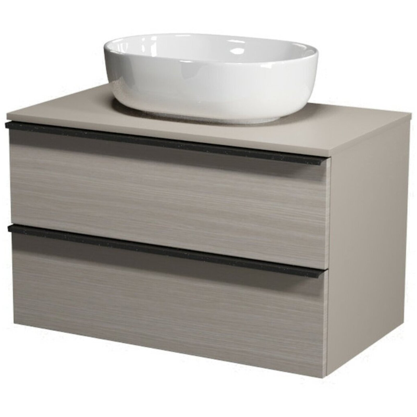Nábytkový set Cersanit Virgo 80, skříňka 80 s deskou šedá, úchytky černé, umyvadlo Moduo 50 na desku oválné bílé