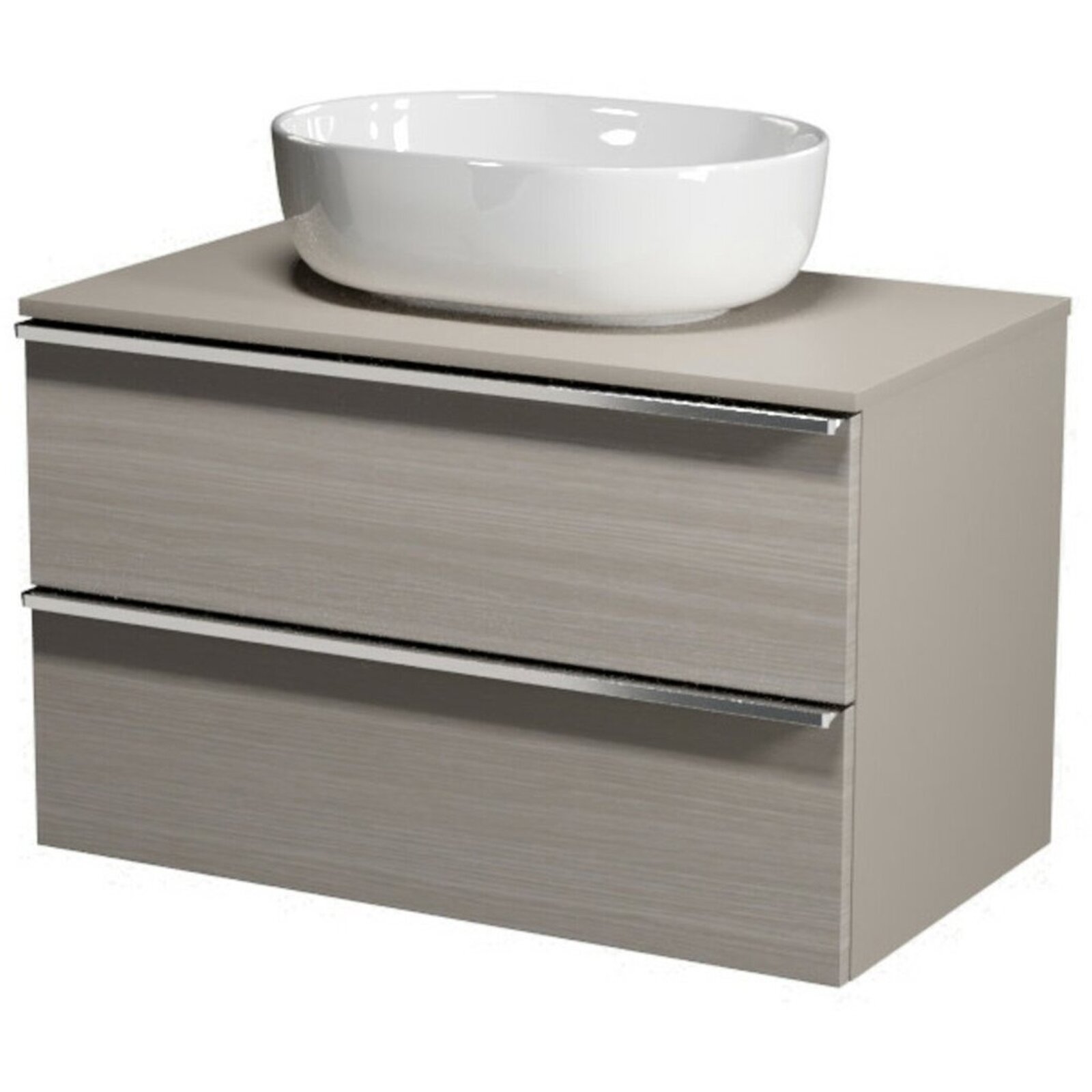 Nábytkový set Cersanit Virgo 80, skříňka 80 s deskou šedá, úchytky chrom, umyvadlo Moduo 50 na desku oválné bílé