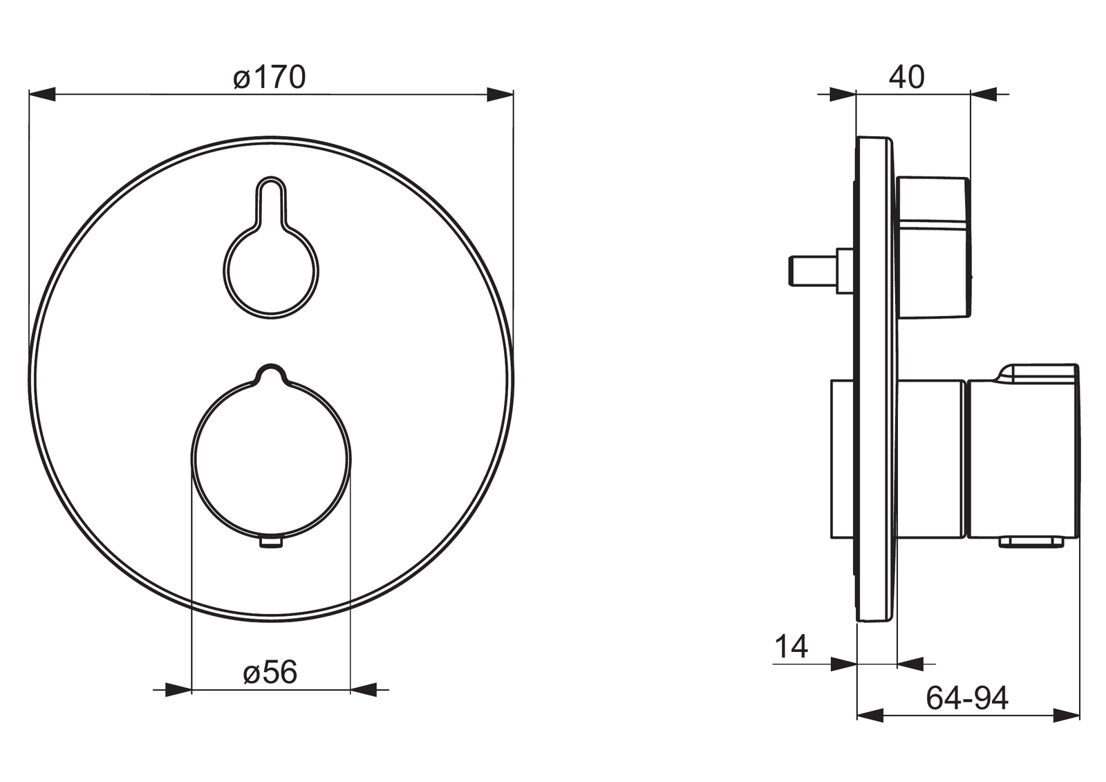 - BLUECLICK - pro snadnou bezšroubovou instalaci vnější krytky; BLUETUNE dodatečné nastavení pozice vnější růžice +/- 3,5°; Funkční jednotka; Funkční jednotka připevněná šrouby; Rám růžice; Kulatá rozeta; Krycí objímka