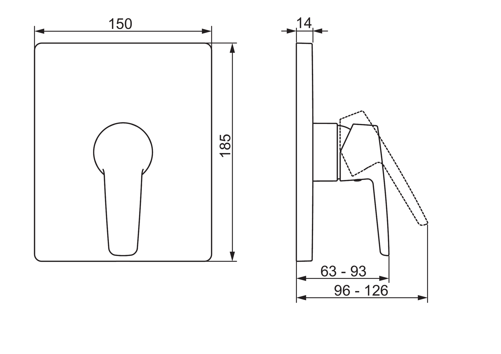 - Páka se symboly teplé a studené vody; Jedna ovládací páka / rukojeť