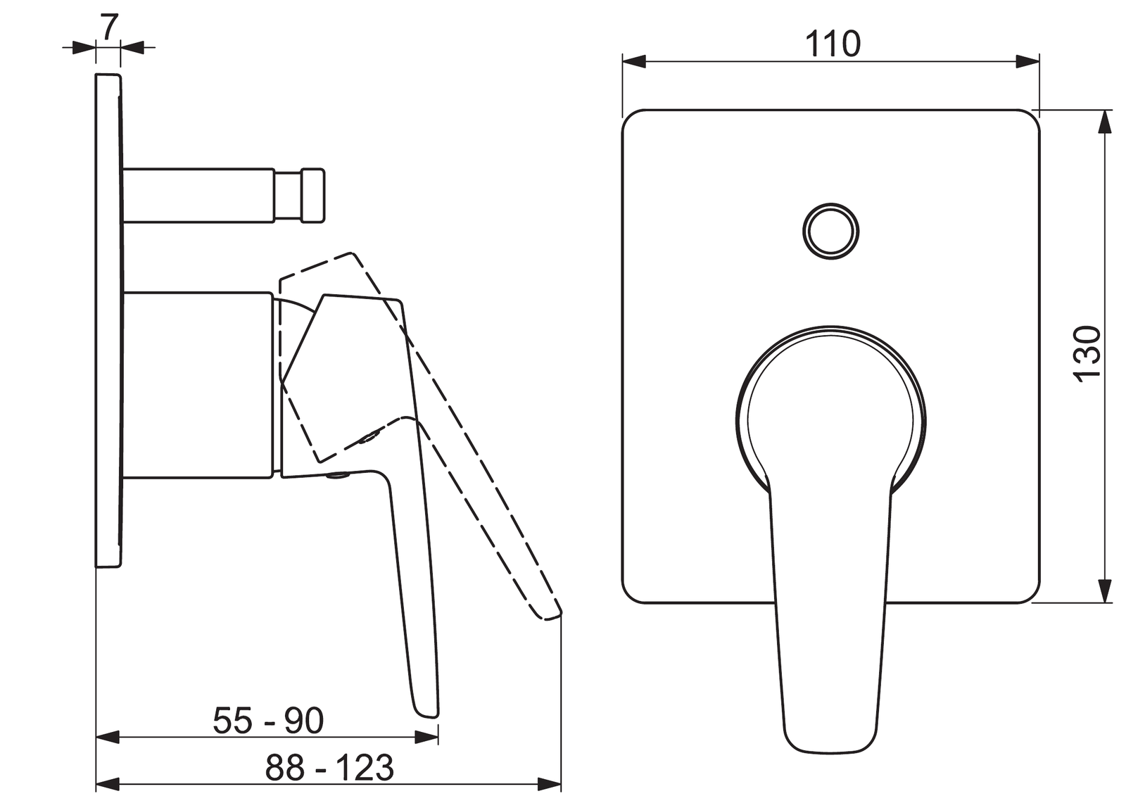 - Jedna ovládací páka / rukojeť; Páka se symboly teplé a studené vody