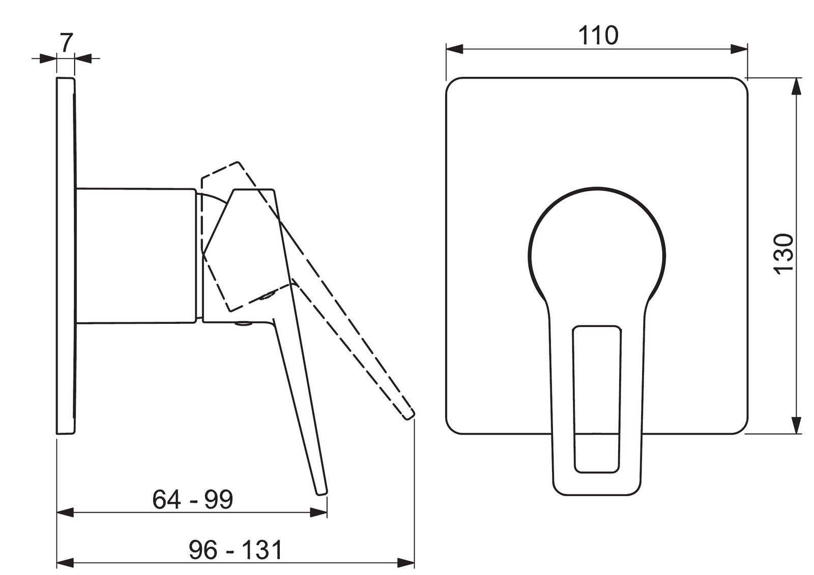 - Jedna ovládací páka / rukojeť; Třmenová páka; Páka se symboly teplé a studené vody
