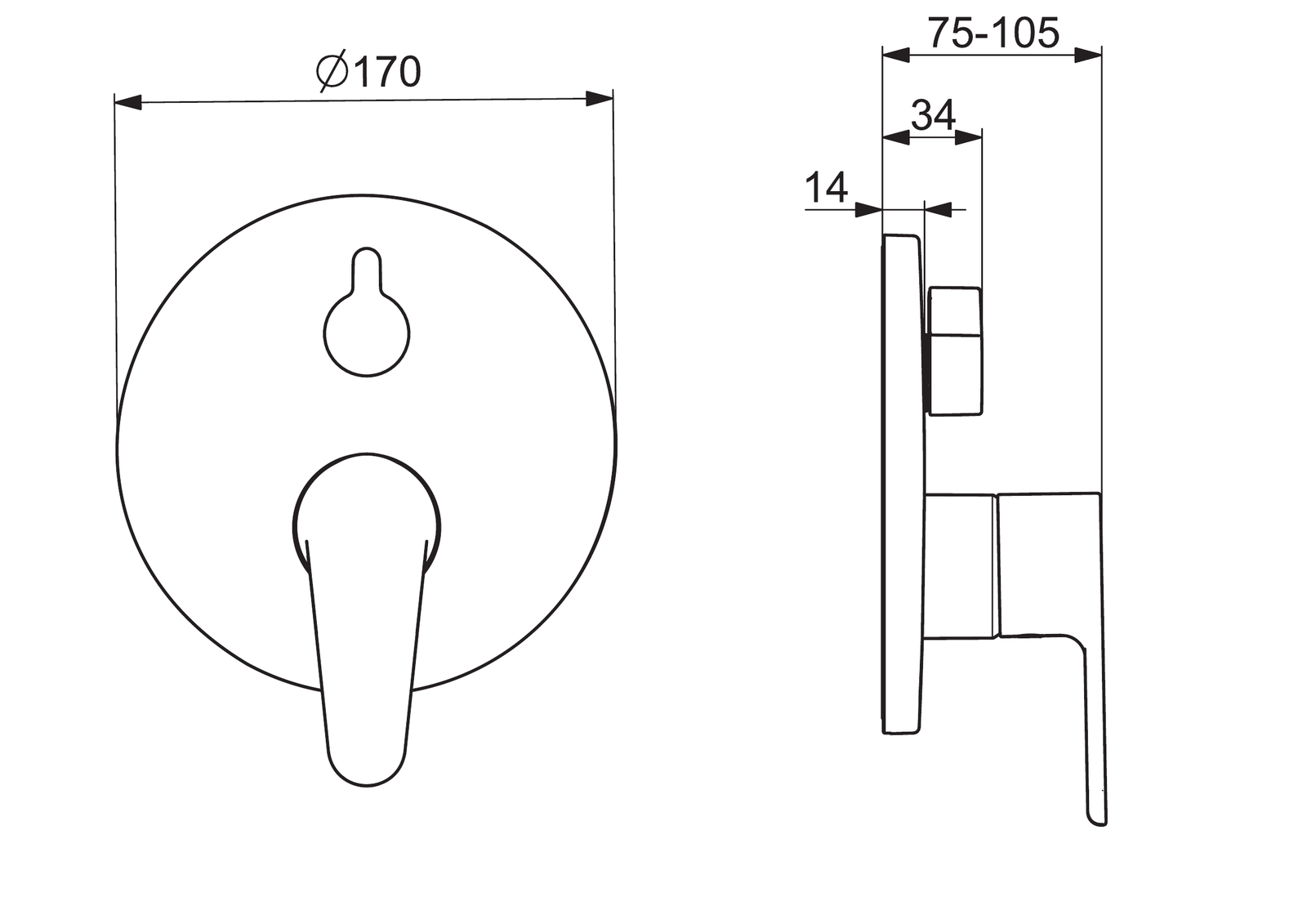 - Jedna ovládací páka / rukojeť; Páka se symboly teplé a studené vody