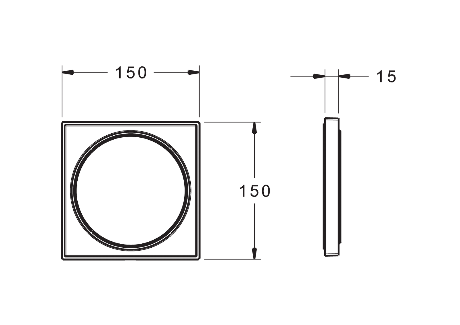 čtvercová nastavovací růžice, 15 mm, vhodná pro všechny čtvercové rozety HANSABLUEBOX s rozměry 150x150mm