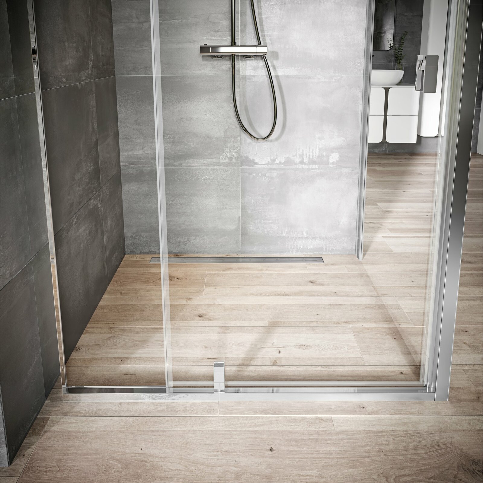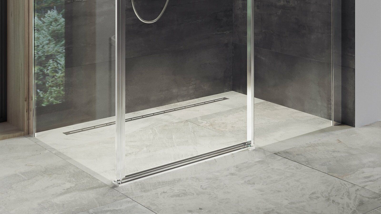V případě kombinace sprchového koutu s odtokovým žlabem je nutné vycházet z rozměrů jednotlivých výrobků. Přesné rozměry sprchových koutů naleznete u jednotlivých výrobků v technickém listu.