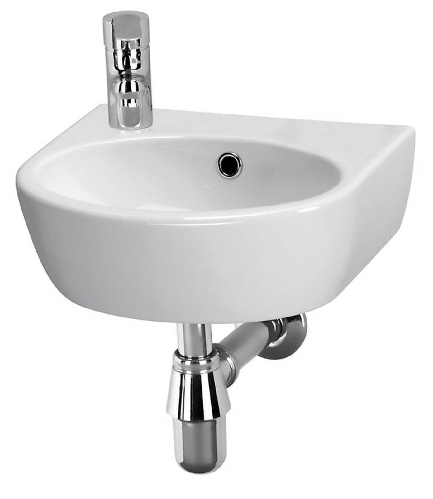 Závěsné umyvadlo PARVA 40, s ozdobným sifonem, se montuje přímo na zeď pomocí šroubů. Otvor pro baterii se nachází na levé straně umyvadla, což umožňuje optimální využití každého centimetru prostoru na desce, díky čemuž je tento model ideální do malé koupelny.