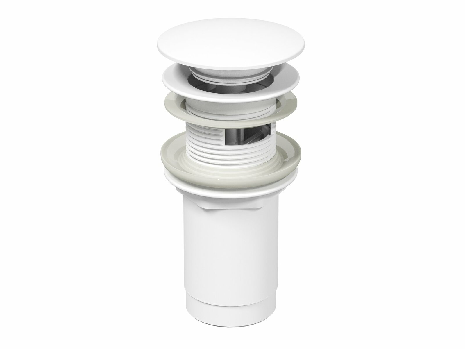 Umyvadlová pileta ClickClack v bílém matném provedení. Vhodná pro umyvadla s přepadem.- vhodná: pro všechna umyvadla s přepadem s odtokem o průměru 46 mm a závitem G 5/4“