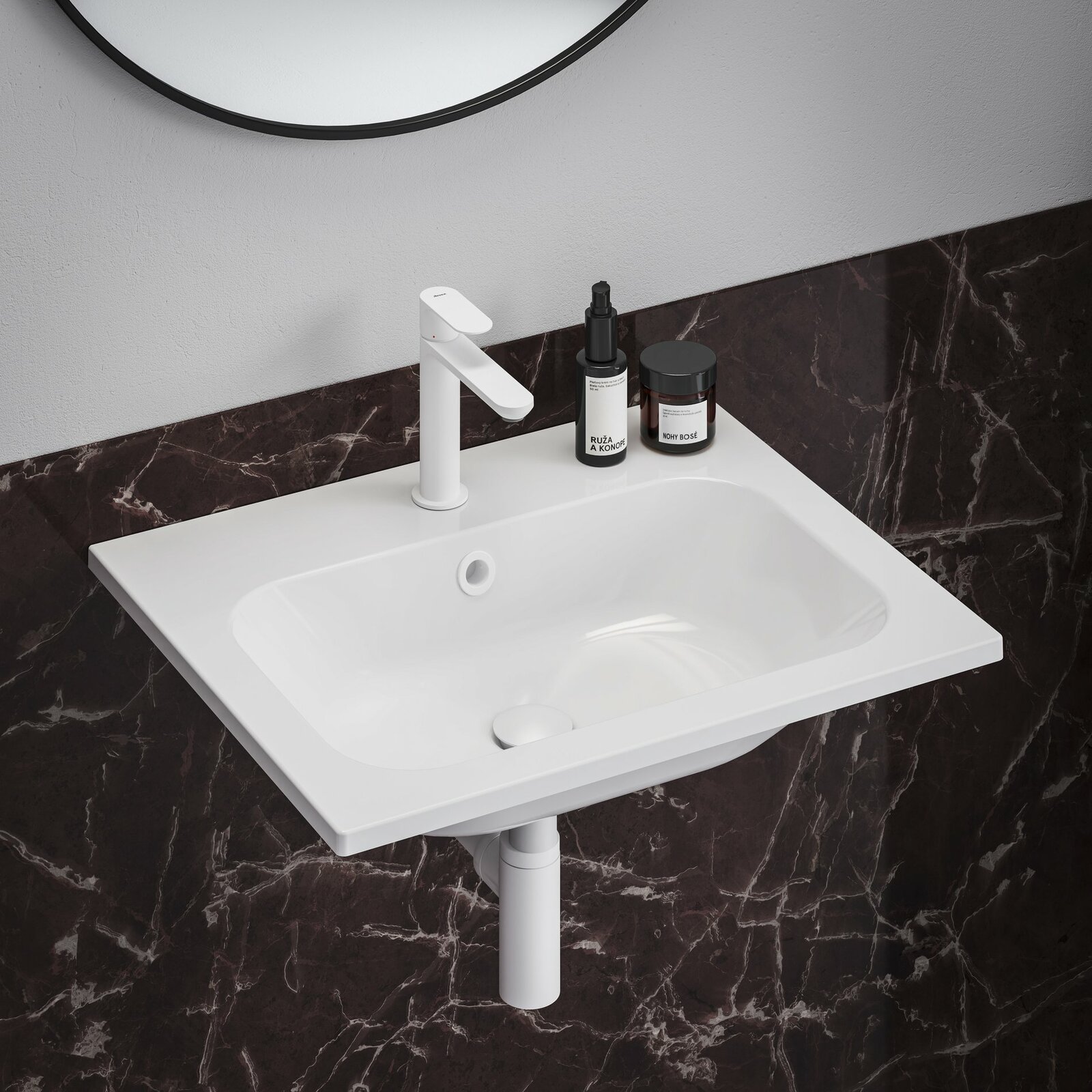 Piletu umístěnou v umyvadle s přepadem zkombinujete s baterií a sifonem shodného barevného provedení bílá matná.