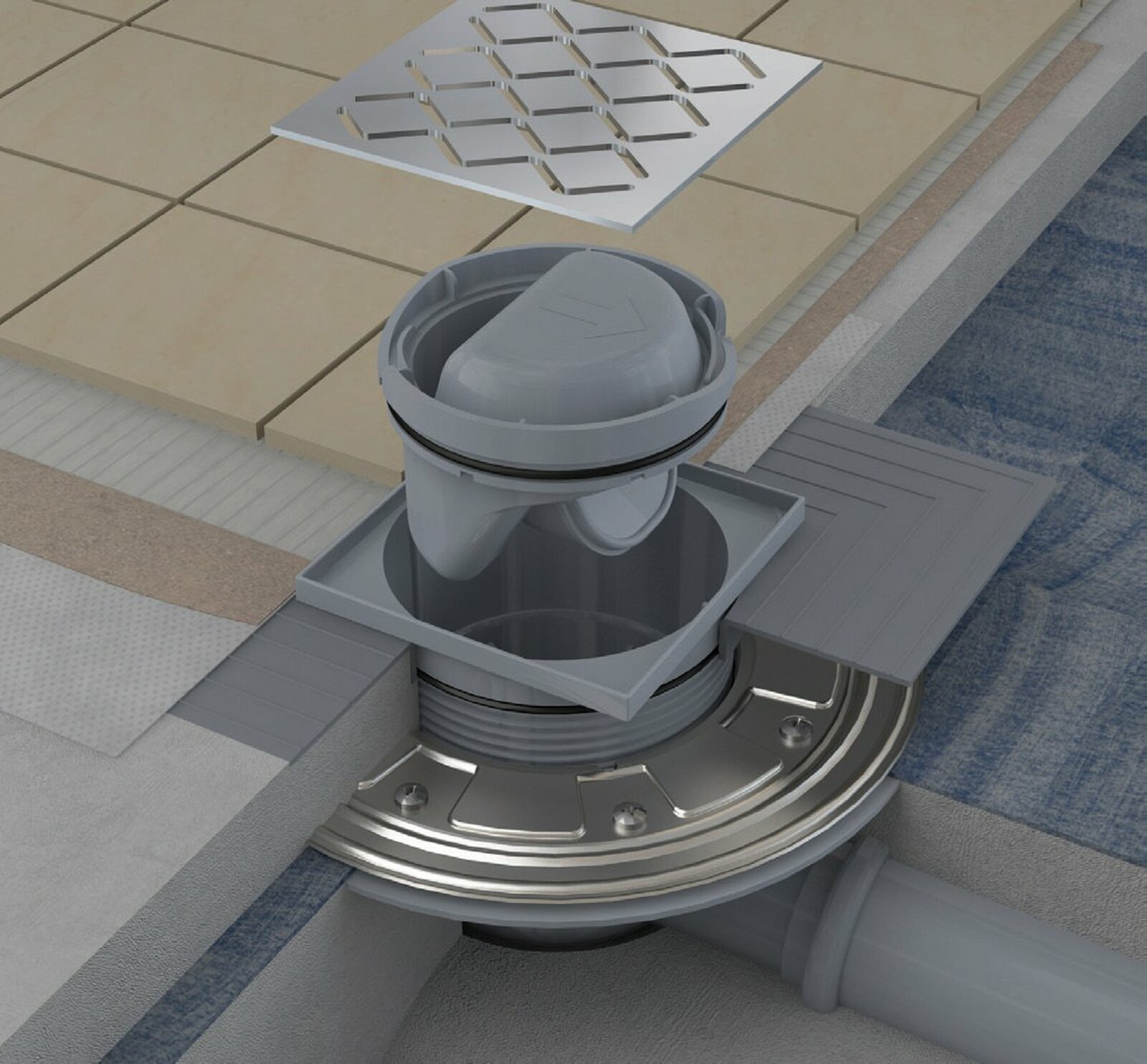 Vhodná do sprchových koutů, koupelen i technických prostor. Stavební výška 104 mm. Límec 2. úrovně izolace a nerezová příruba.