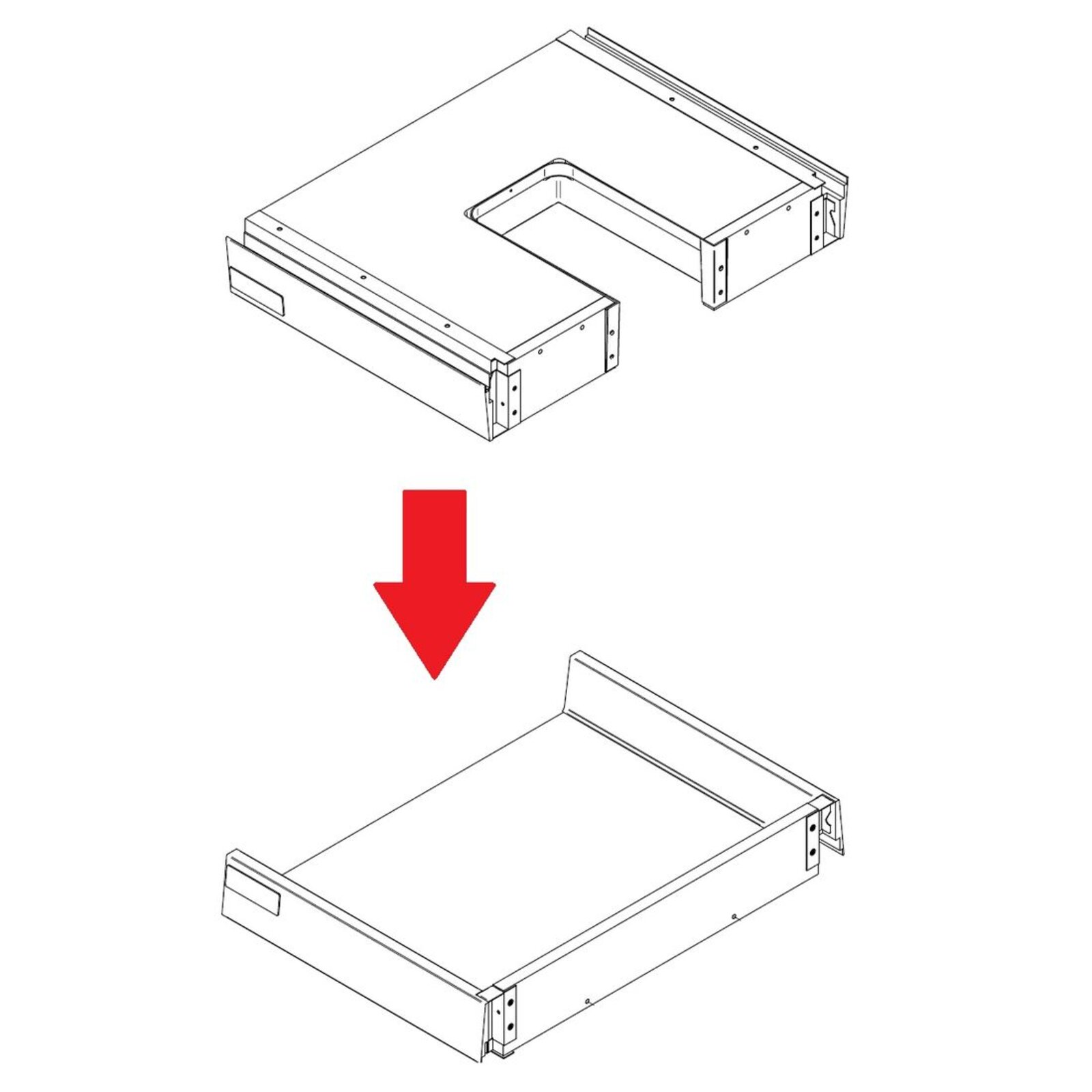 Určeno pro skříňky 60 cm ze sérií EBS Pure, Nevio a Duomo, balení obsahuje rovné dno a zadní okraj šuplíku. Vzhledem k modularitě nábytků EBS a oblíbené sestavě, kdy jsou dvě skřínky vedle sebe, ale pouze s jedním umyvadlem, byla zavedena tato přestavbová sada. Umožňuje výměnu dna a zadního čílka šuplíku za sadu bez výřezu na sifon. Tím dosáhnete většího úložného prostoru ve skříňce, nad kterou není umyvadlo. Výměna se provádí až při montáži skřínky (lze i kdykoliv později).